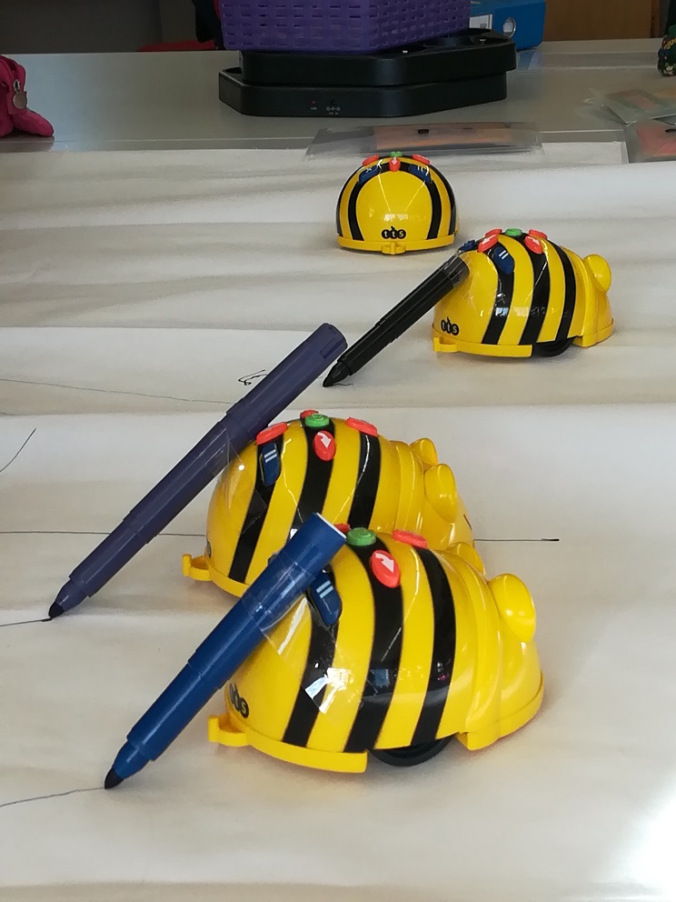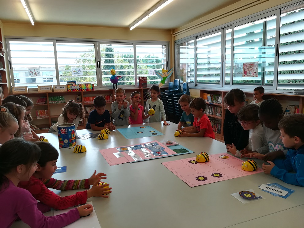 Durant el primer trimestre, als alumnes de Cicle Inicial i Cicle Mig, ens ha visitat el Bee-bot: un robot en forma d’abella molt divertit que ens permet poder programar-lo per moure’l. Això vol dir que li podem dir on ha d’anar gràcies a uns botons que té a l’esquena. En petit grup ens hem organitzat per consensuar les accions i realitzar diferents activitats de repte, superar obstacles amb recorreguts i fins i tot dibuixar formes geomètriques.