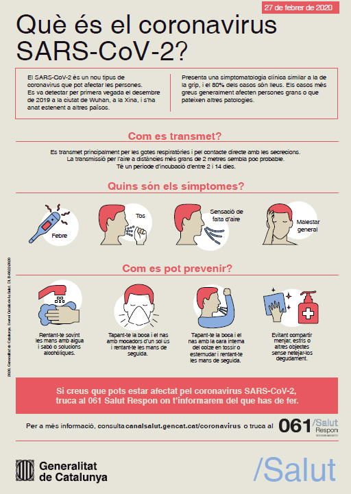Us deixem amb materials que ha produït el Departament de Salut en relació al coronavirus per tal de donar, de forma molt didàctica, informació sobre aquest virus i consells sobre com evitar-ne el contagi.