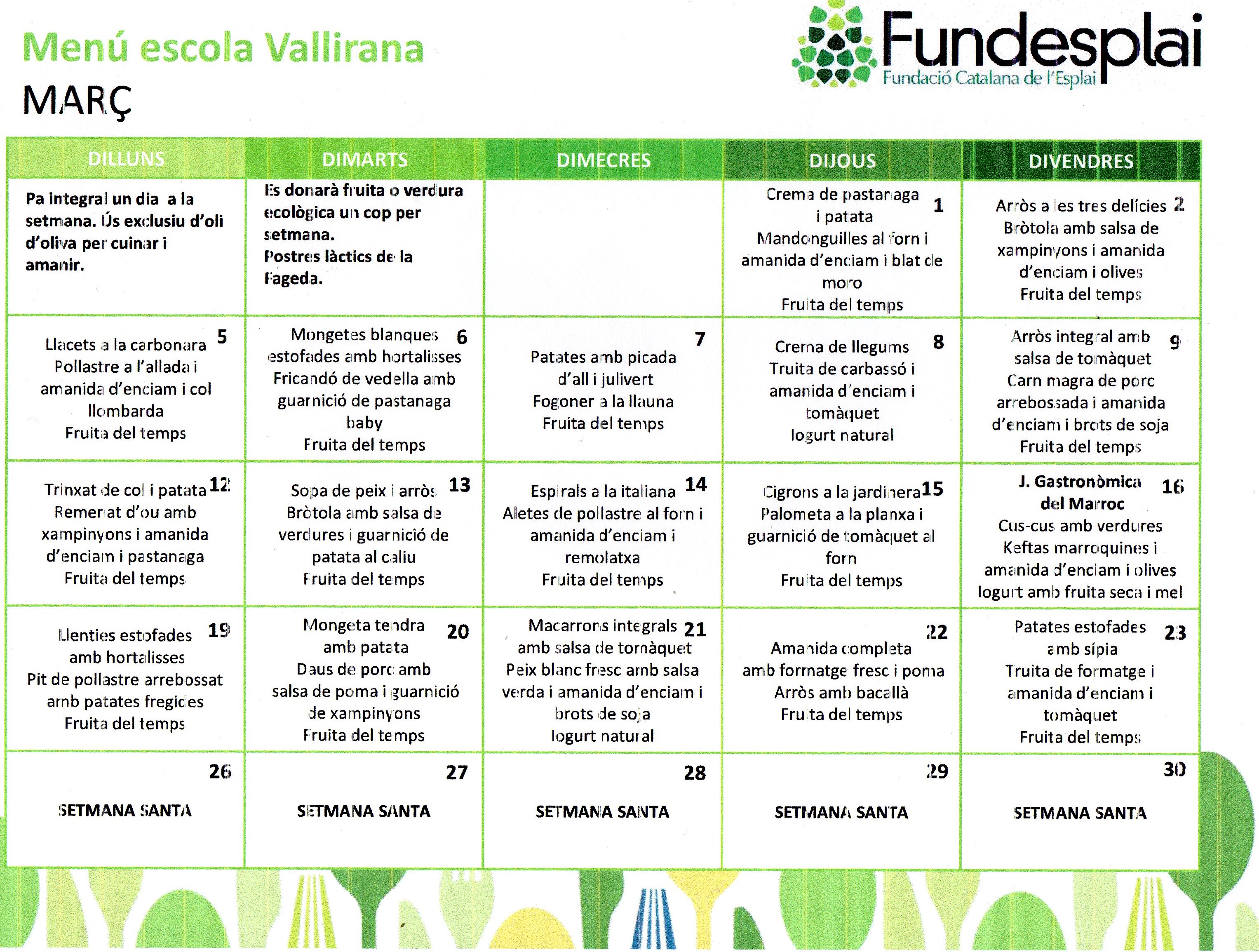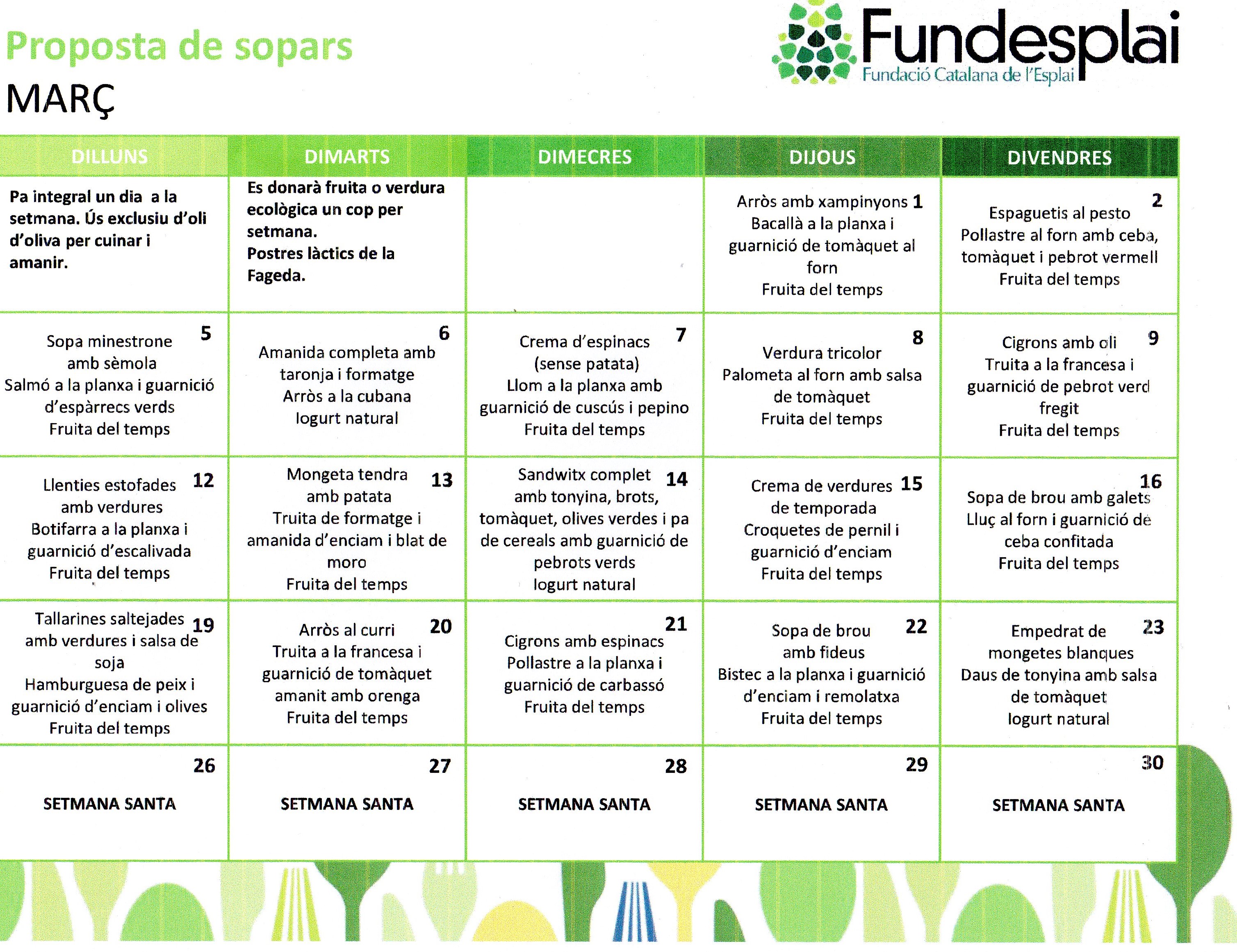 Aquest és el menú del mes d’ABRIL. A més, a la segona imatge veureu una proposta de sopars.
