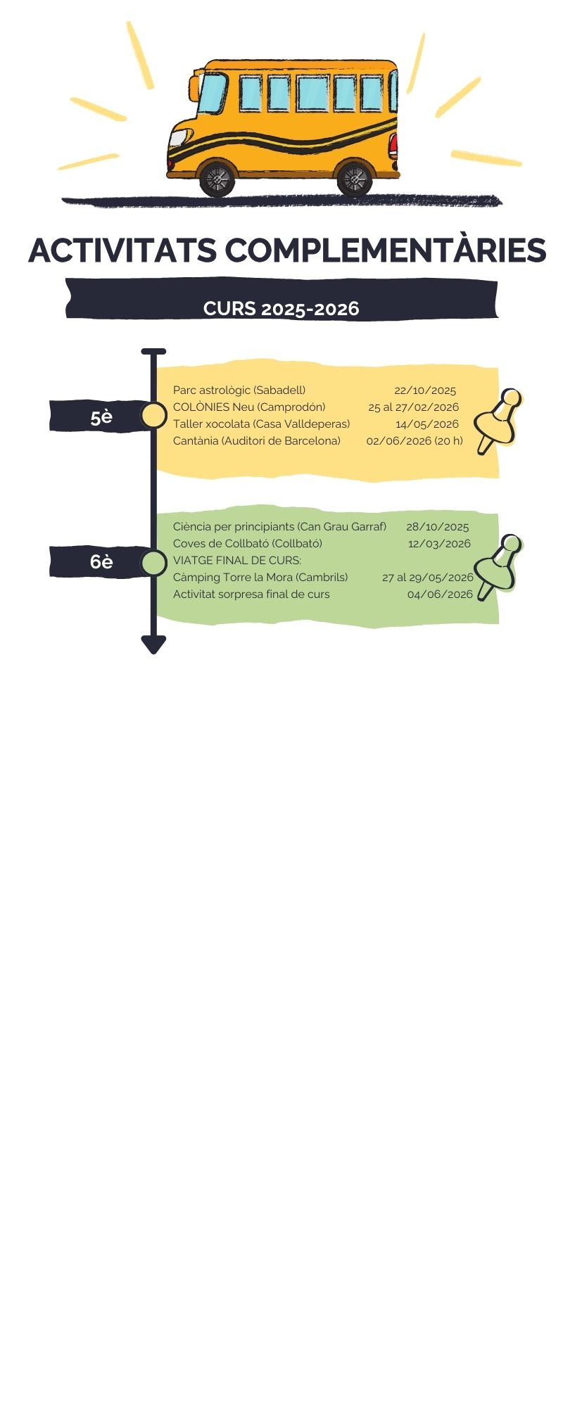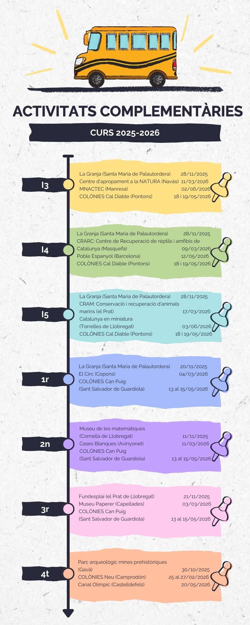 A continuació, trobareu la relació d’activitats complementàries que farem a l’escola aquest curs 2025-206