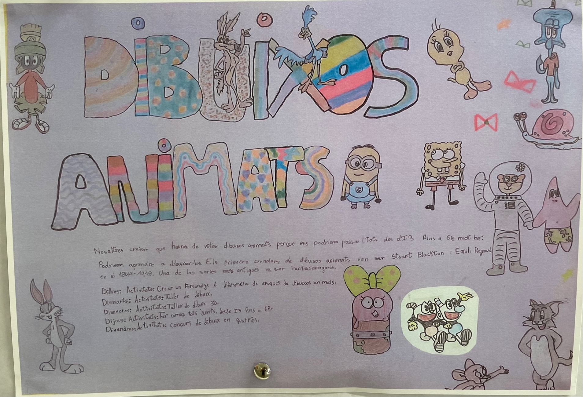 Dels temes que havien proposat cada una de les classes, l’alumnat ha escollit “Els dibuixos Animats”.