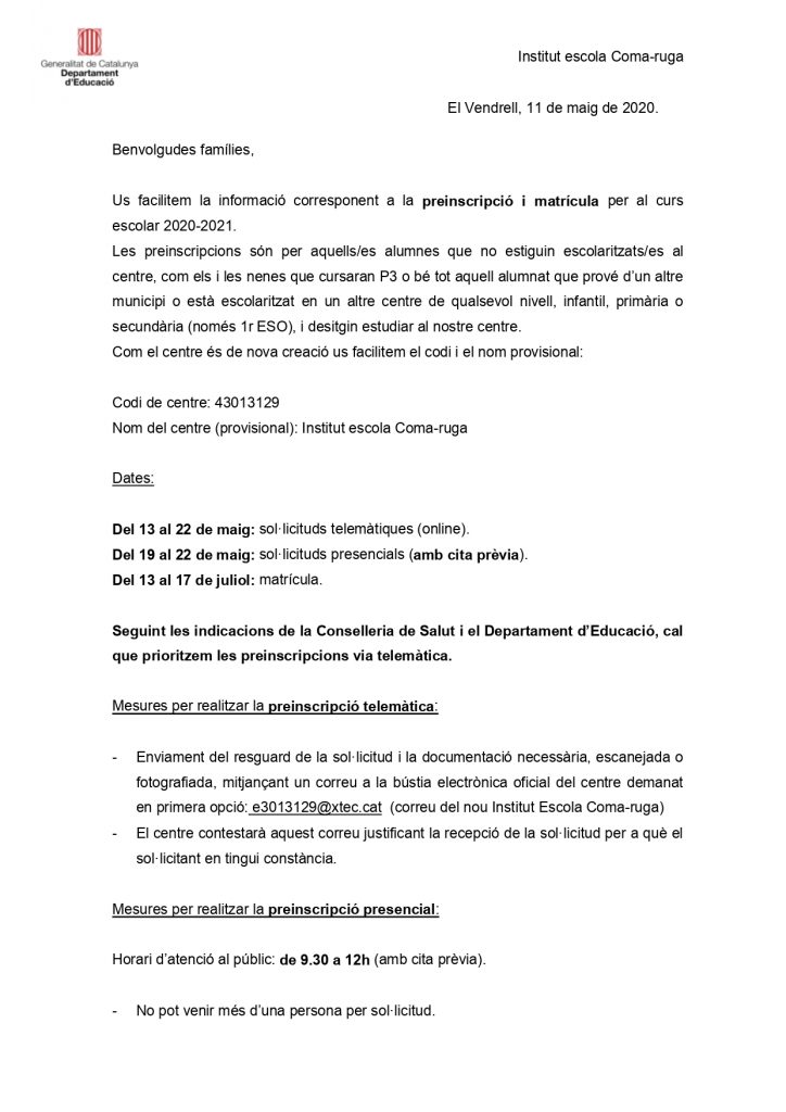 L’alumnat que està matriculat a l’escola Pla de Mar o l’escola Secallets no estan inclosos en aquest procediment administratiu.