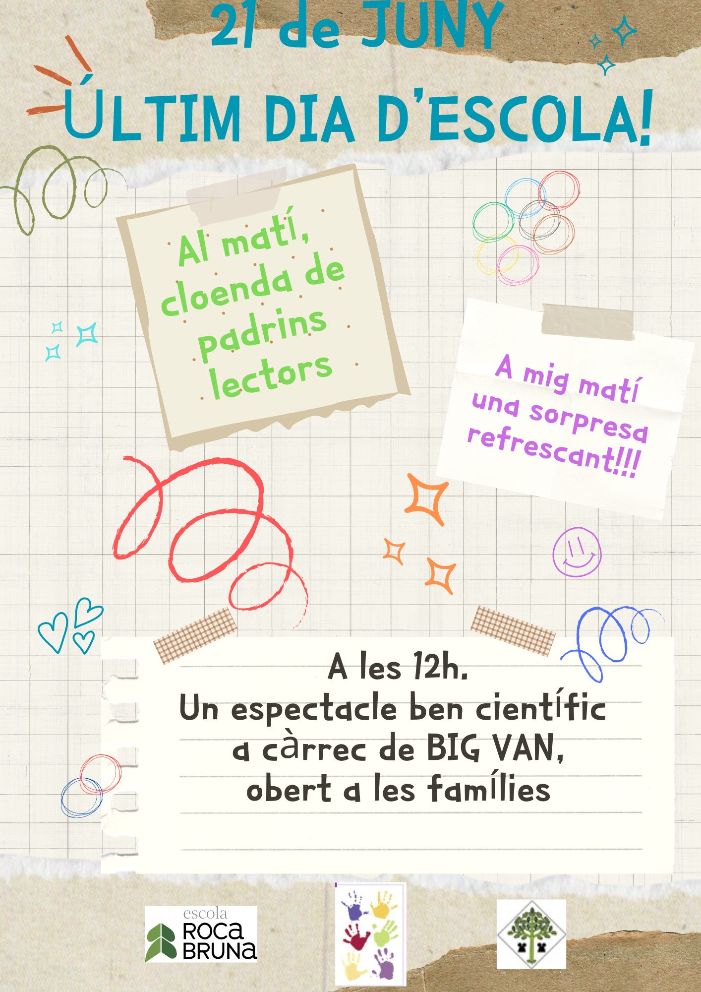 Estimades famílies, Us convidem a un espectacle ben científic a càrrec de Big Van. Us hi esperem! L’equip docent de l’escola Rocabruna us desitja un bon estiu i que gaudiu d’unes ben merescudes vacances!