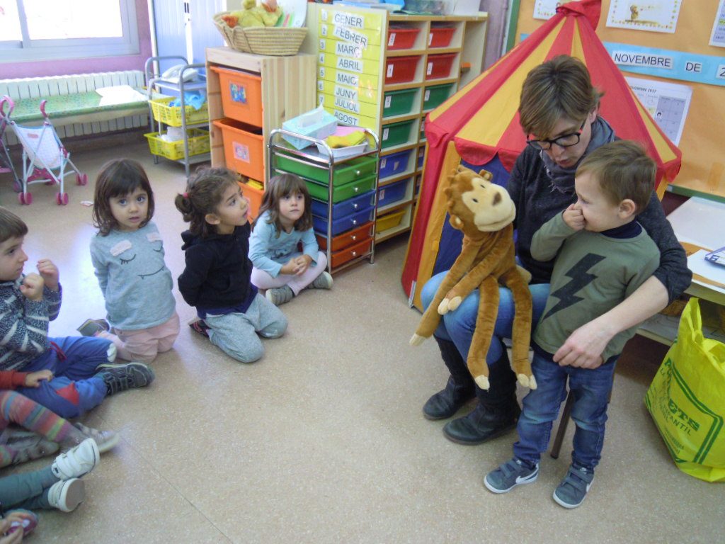 Els més menuts de l’escola fan anglès amb la companyia d’en Cheeky monkey, un mico molt simpàtic el qual els explica un seguit de vocabulari, cançons i històries d’una manera lúdica i divertida. The little ones are learning English with Cheeky monkey! He is very funny and he teach them vocabulary, songs and stories. We
