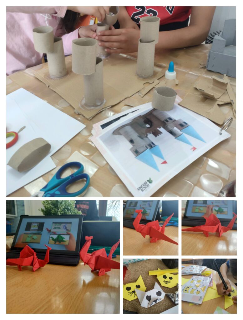 Tots els nens i nenes de la primària, cada dilluns tenim diferents propostes a l’ambient d’art! Aquí us deixem algunes de les nostres creacions de papiroflèxia i propostes amb cartró. Esperem que us agradin!