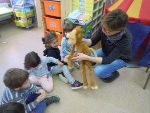 The little ones are learning English with Cheeky monkey! He is very funny and he teach them vocabulary, songs and stories. We all have lot of fun !