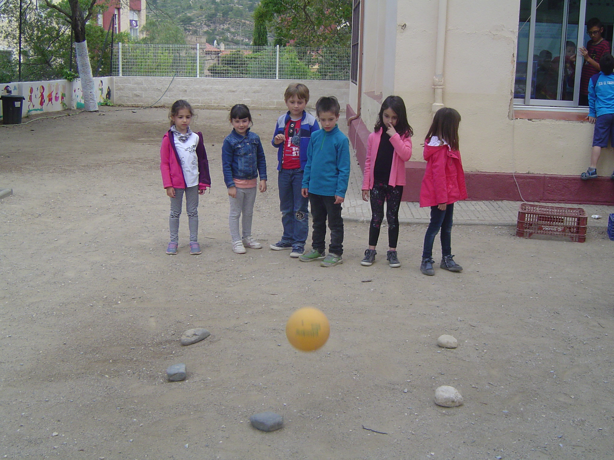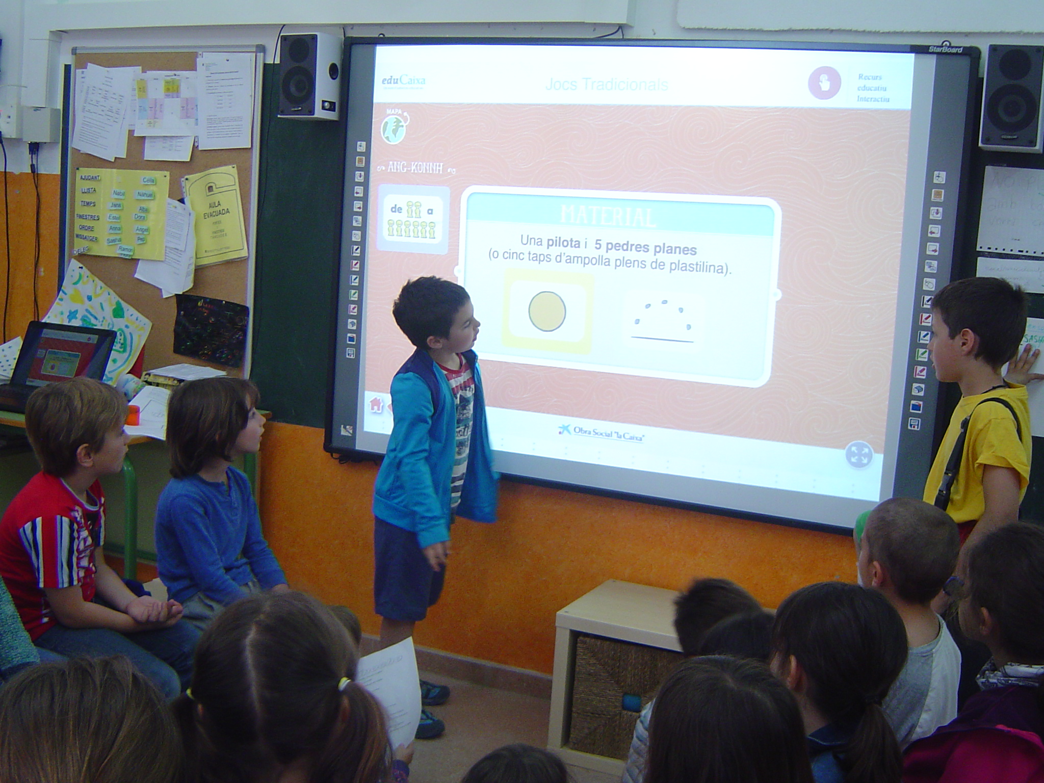 Durant aquest trimestre els alumnes de primer s’han estat preparant una exposició oral sobre alguns jocs tradicionals que es juguen a diferents països del món. Primer han llegit la informació, l’ha recollida en una taula i han practicat l’exposició amb l’ajuda d’unes imatges. Després hi hem jugat i ho han explicat als altres grups de l’escola.