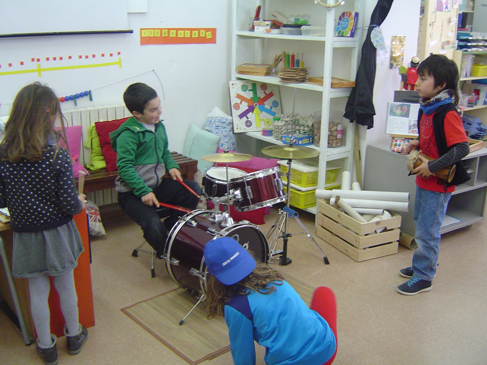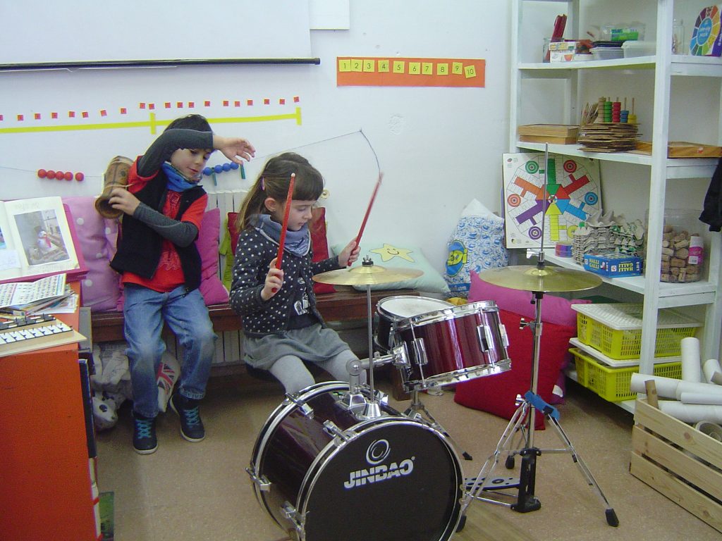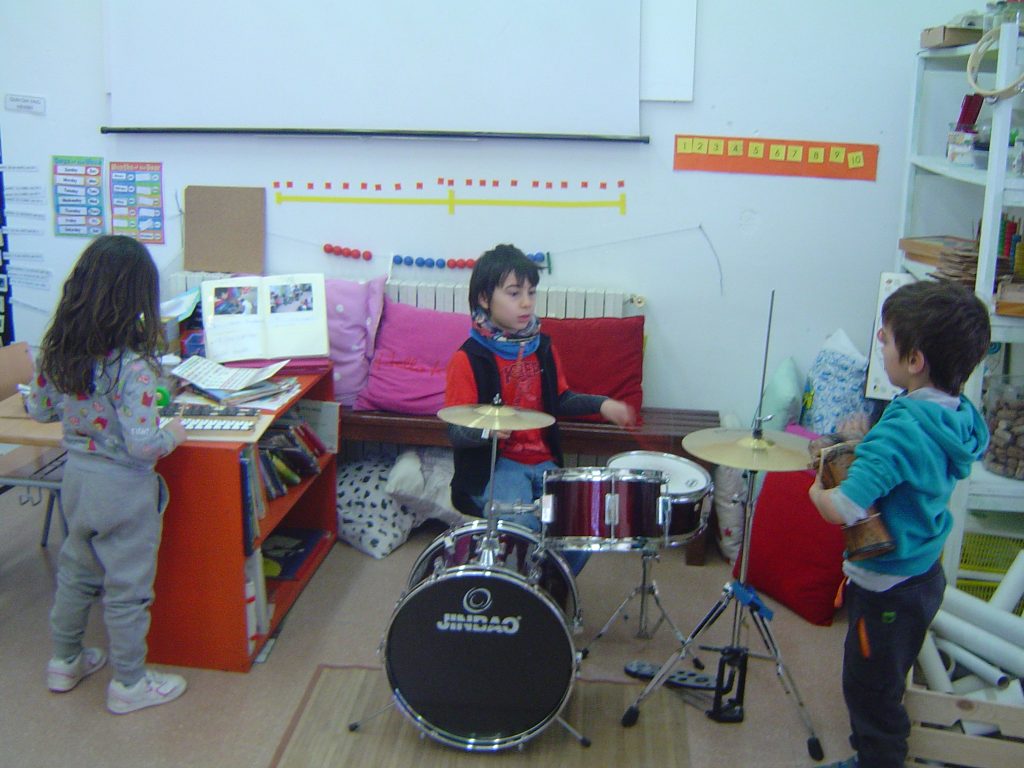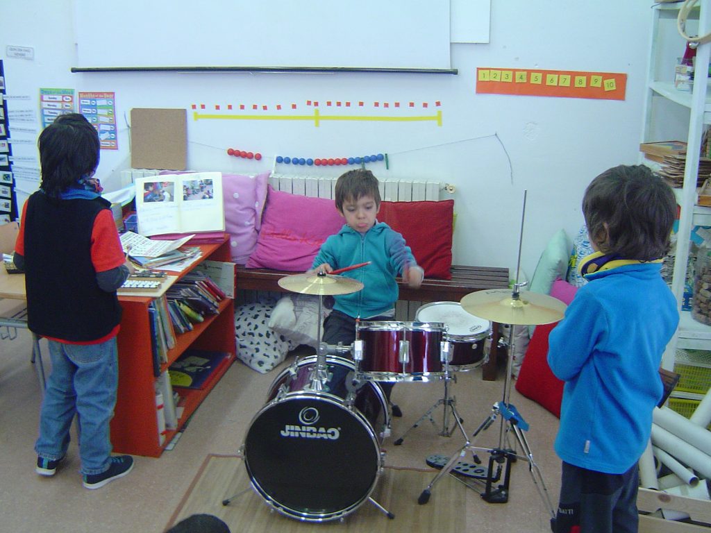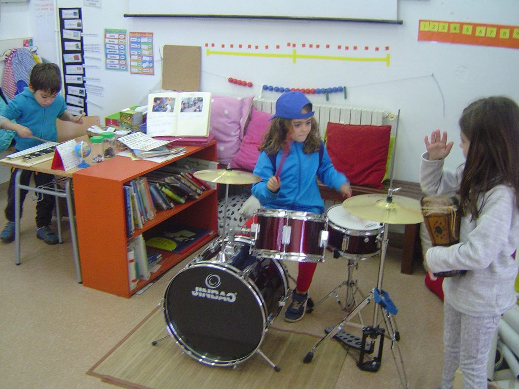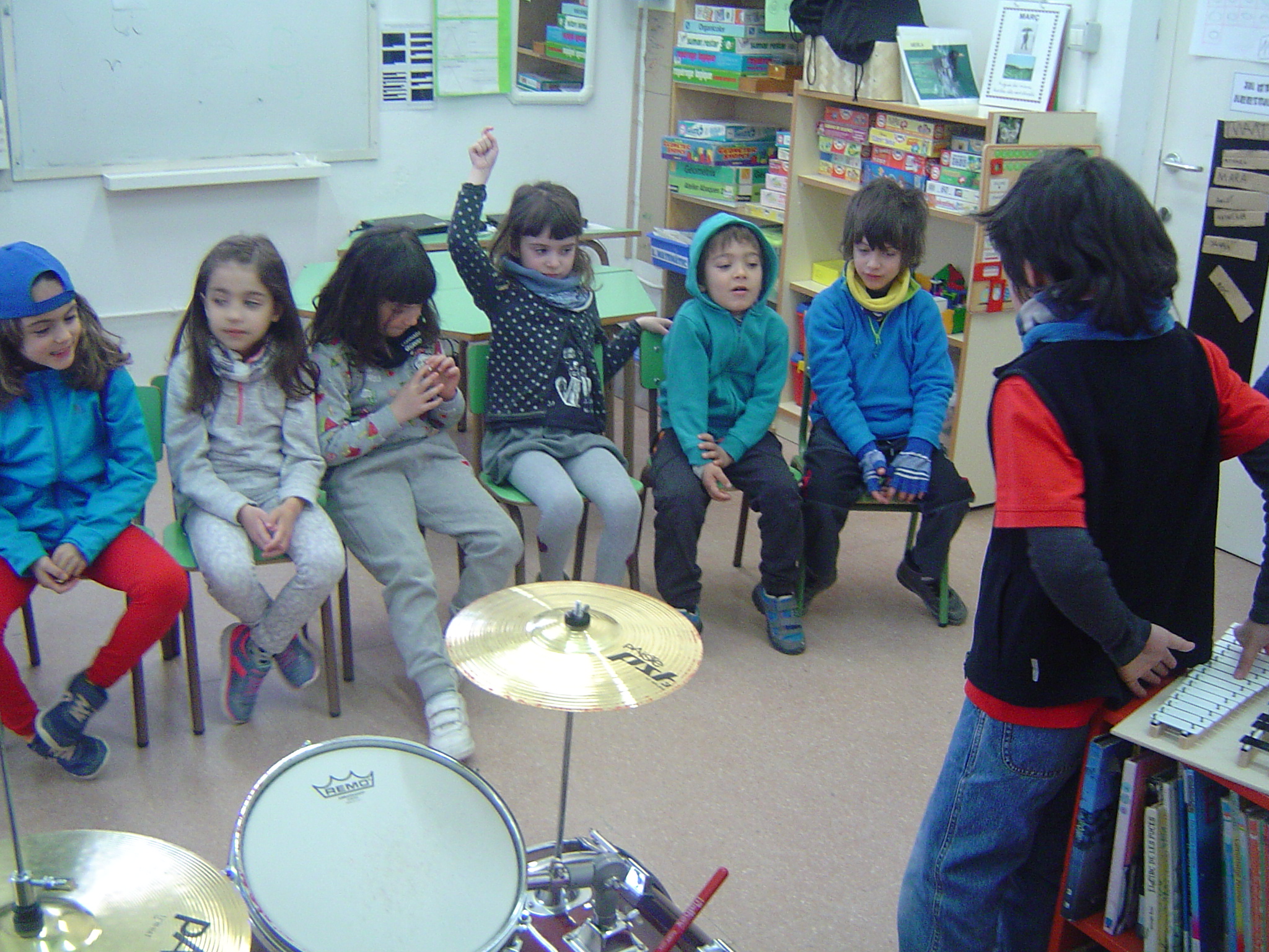 Avui el Bru ens ha explicat coses sobre la bateria. Aprofitant que ell la sap tocar, l’ha portat a l’escola. A més, ens ha ensenyat alguns ritmes i els hem intentat tocar. També ha portat un xilòfon i un tambor. Per acabar, hem fet un concert amb tots els instruments.
