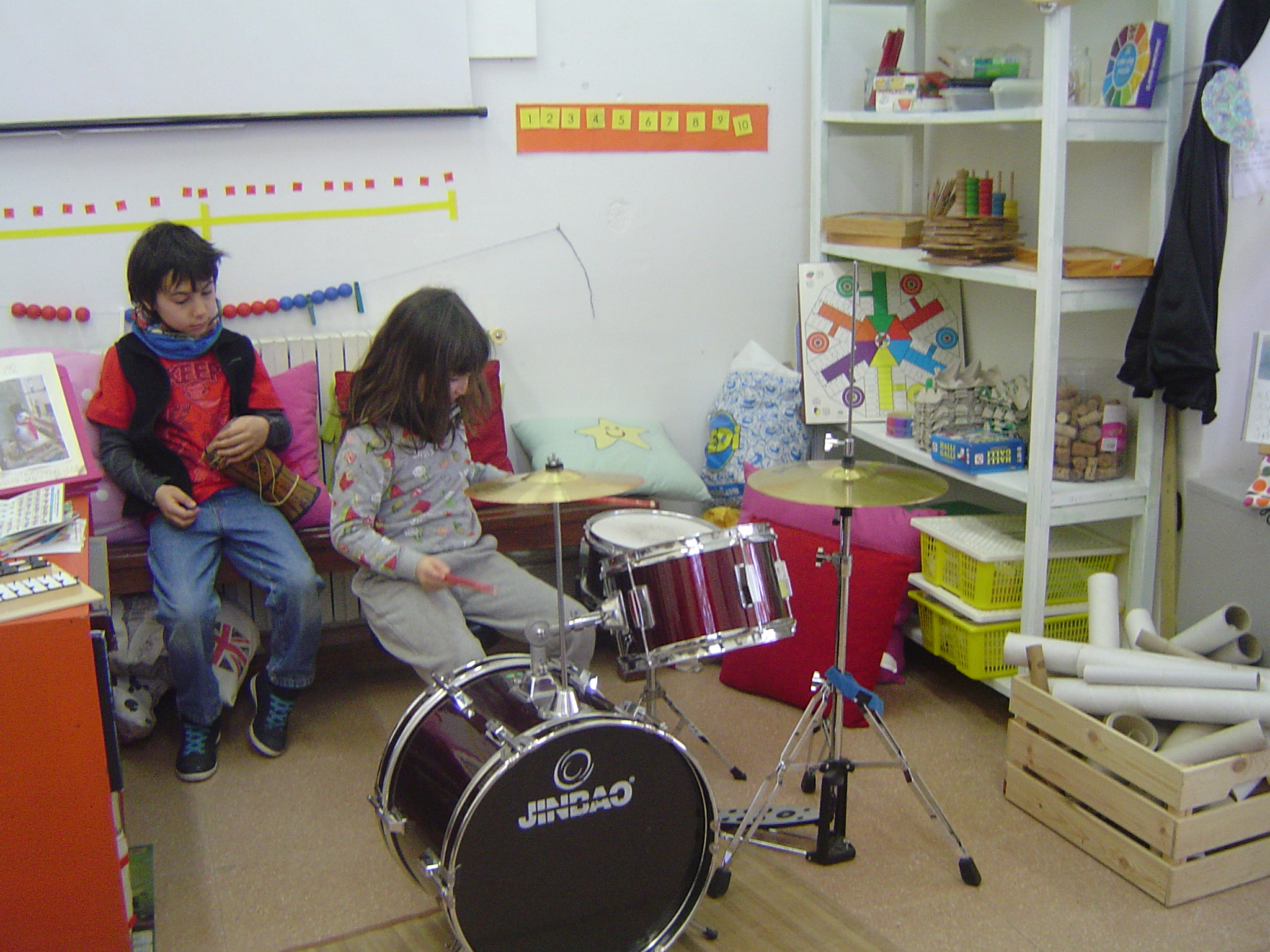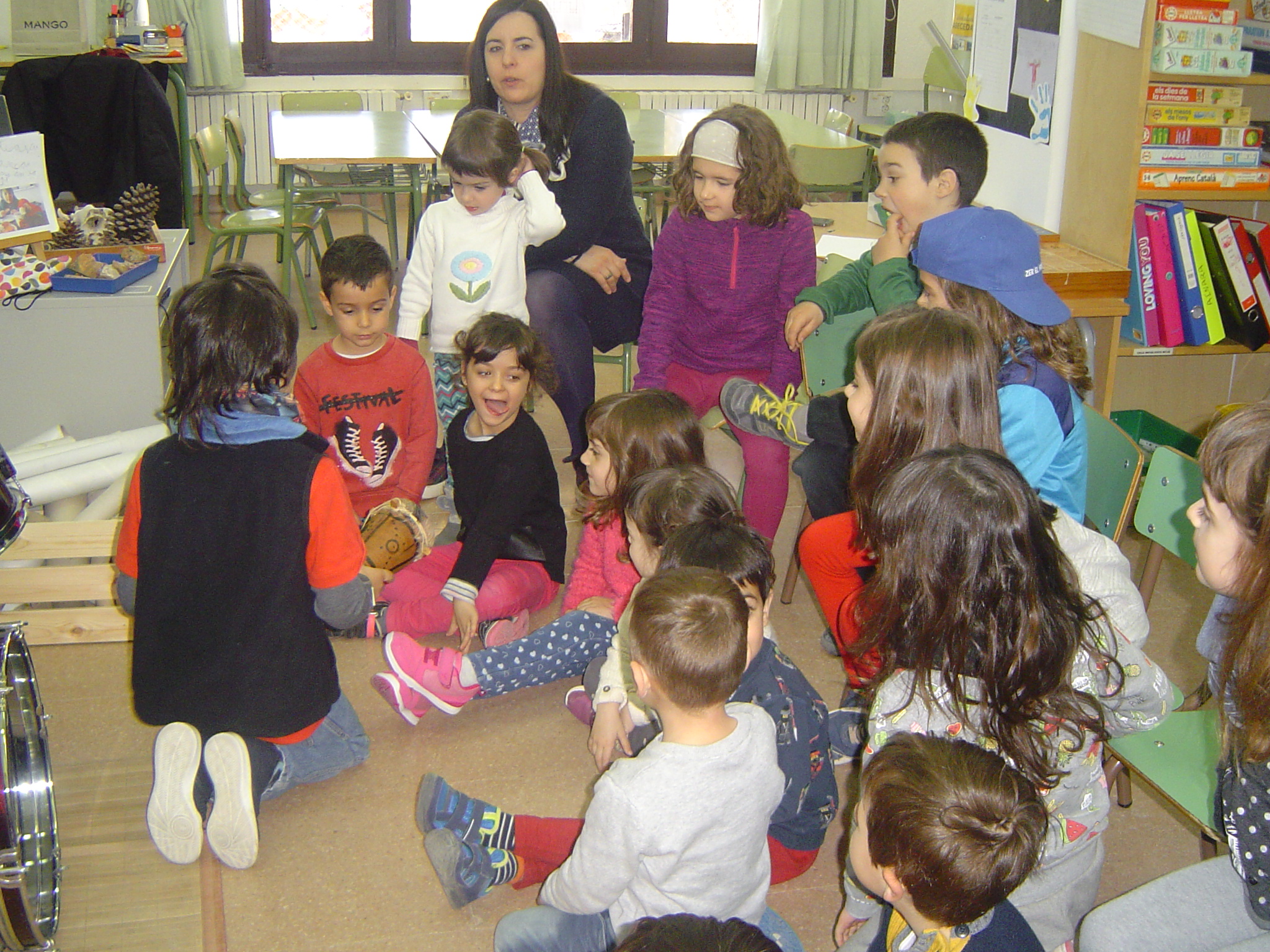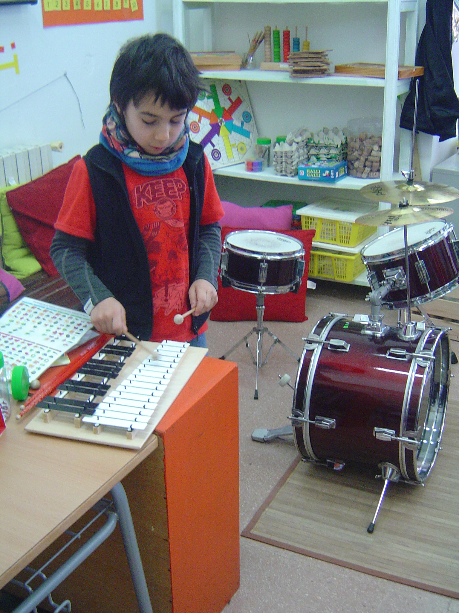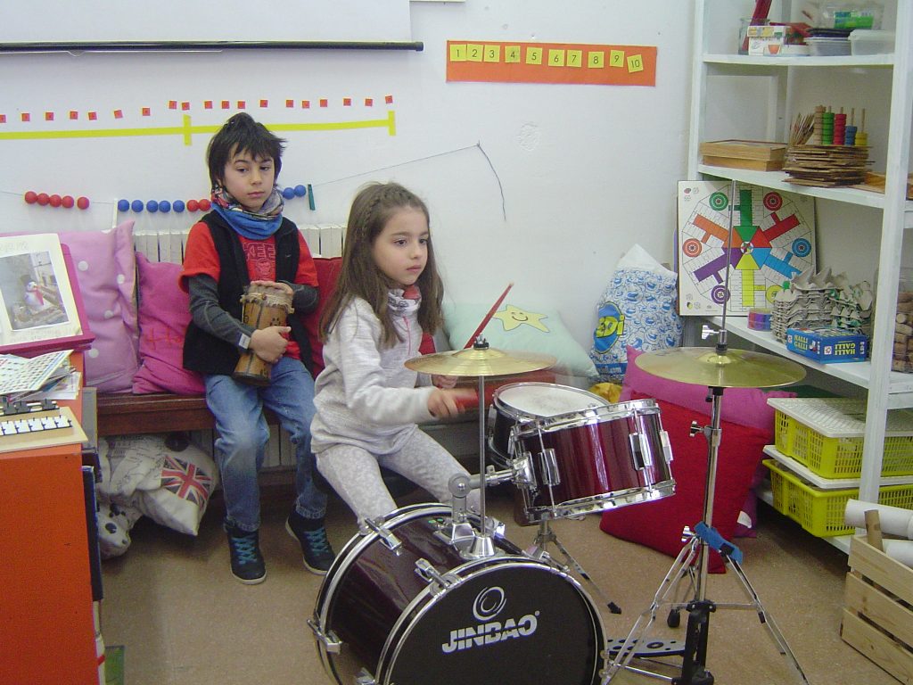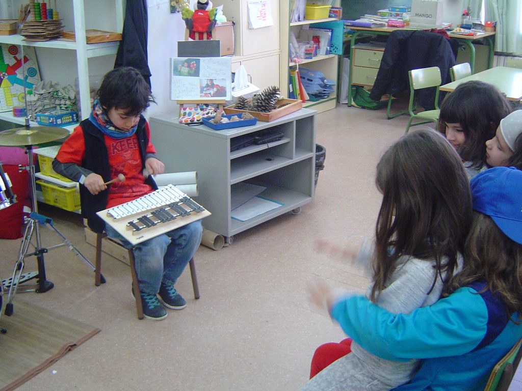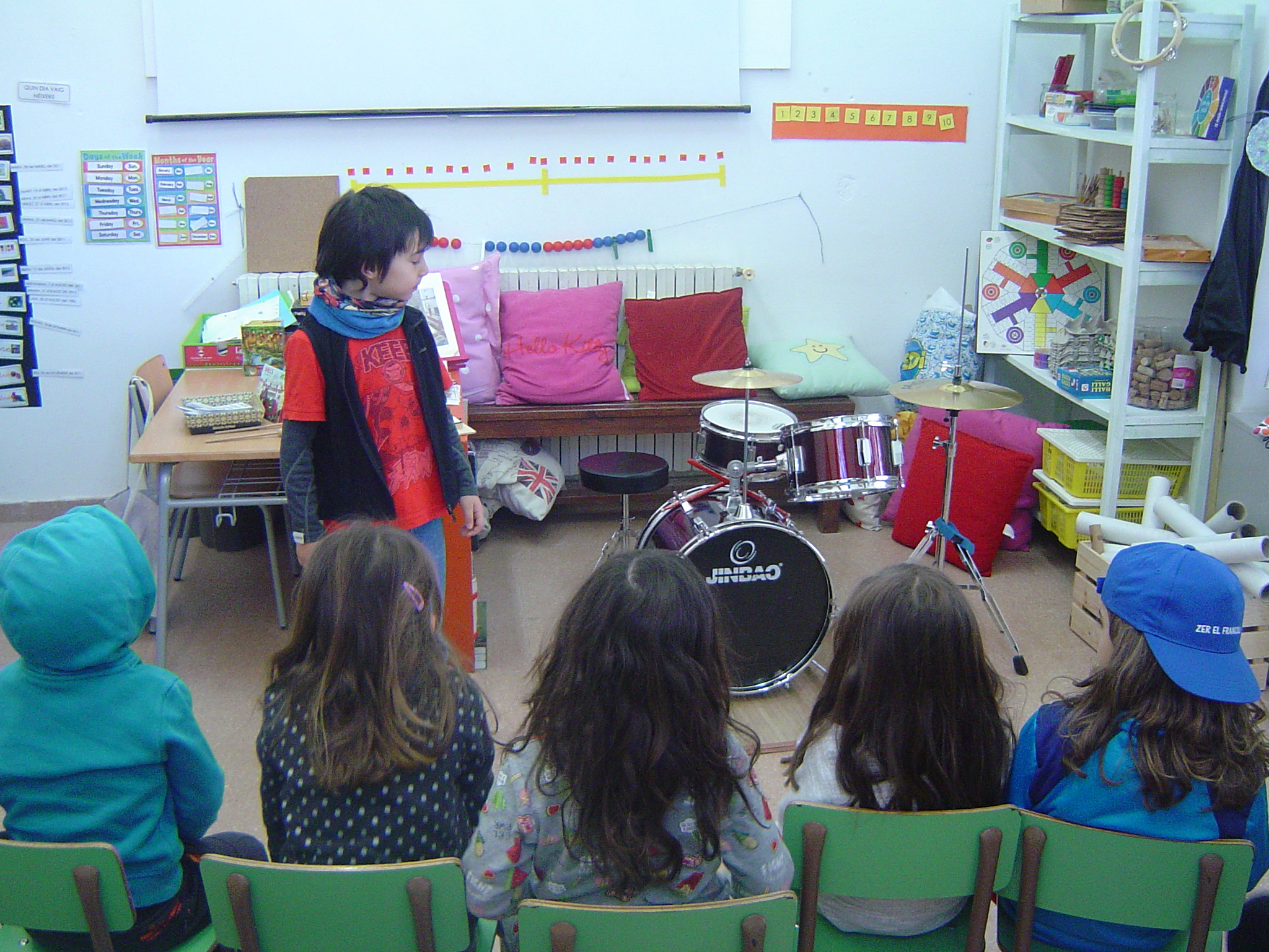 Avui el Bru ens ha explicat coses sobre la bateria. Aprofitant que ell la sap tocar, l’ha portat a l’escola. A més, ens ha ensenyat alguns ritmes i els hem intentat tocar. També ha portat un xilòfon i un tambor. Per acabar, hem fet un concert amb tots els instruments.