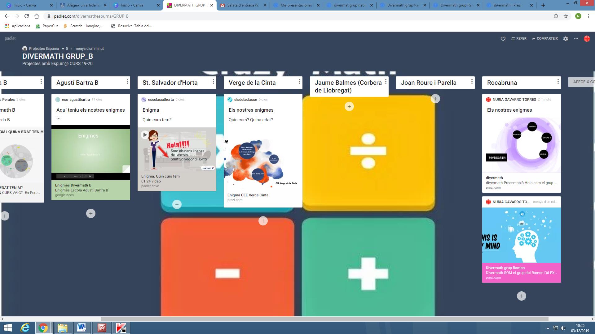 Des de fa uns cursos l’Escola Rocabruna participa amb un projecte col.laboratiu que s’anomena Divermath. En aquest projecte només hi participen la comunitat dels grans. És un projecte que segueix l’estructura de treball col·laboratiu ( hi participen més centres de Catalunya), on tots els centres participants han de fer les tasques perquè el projecte avanci i arribi a aconseguir l’objectiu: crear una situació on hi hagi la necessitat d’usar les matemàtiques de manera significativa, útil i aplicada a la realitat entre alumnes de diferents llocs geogràfics fent servir eines TAC. L’objectiu final d’aquest projecte és la creació de jocs matemàtics multigrau per jugar-hi tots.