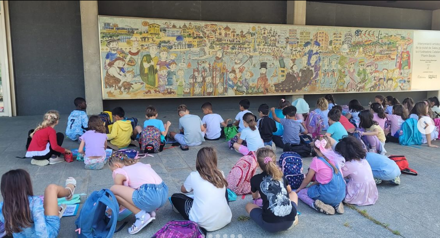 Avui els alumnes de segon hem anat a pintar el mural de Pilarín Bayés (il•lustradora catalana) que hi ha a l’Ajuntament de Salou i ens ho hem passat molt bé🎨 #SomEscolaSalou #FemEscola