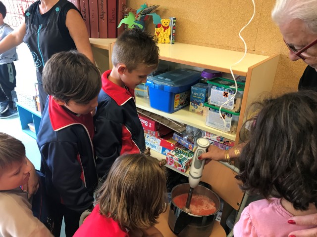 Els alumnes de primer hem fet salmorejo! Raquel Caceres15/10/18 Els alumnes de primer hem fet salmorejo amb els productes que ens ha donat el nostre hort. Tots l’hem tastat i ens ha semblat boníssim!