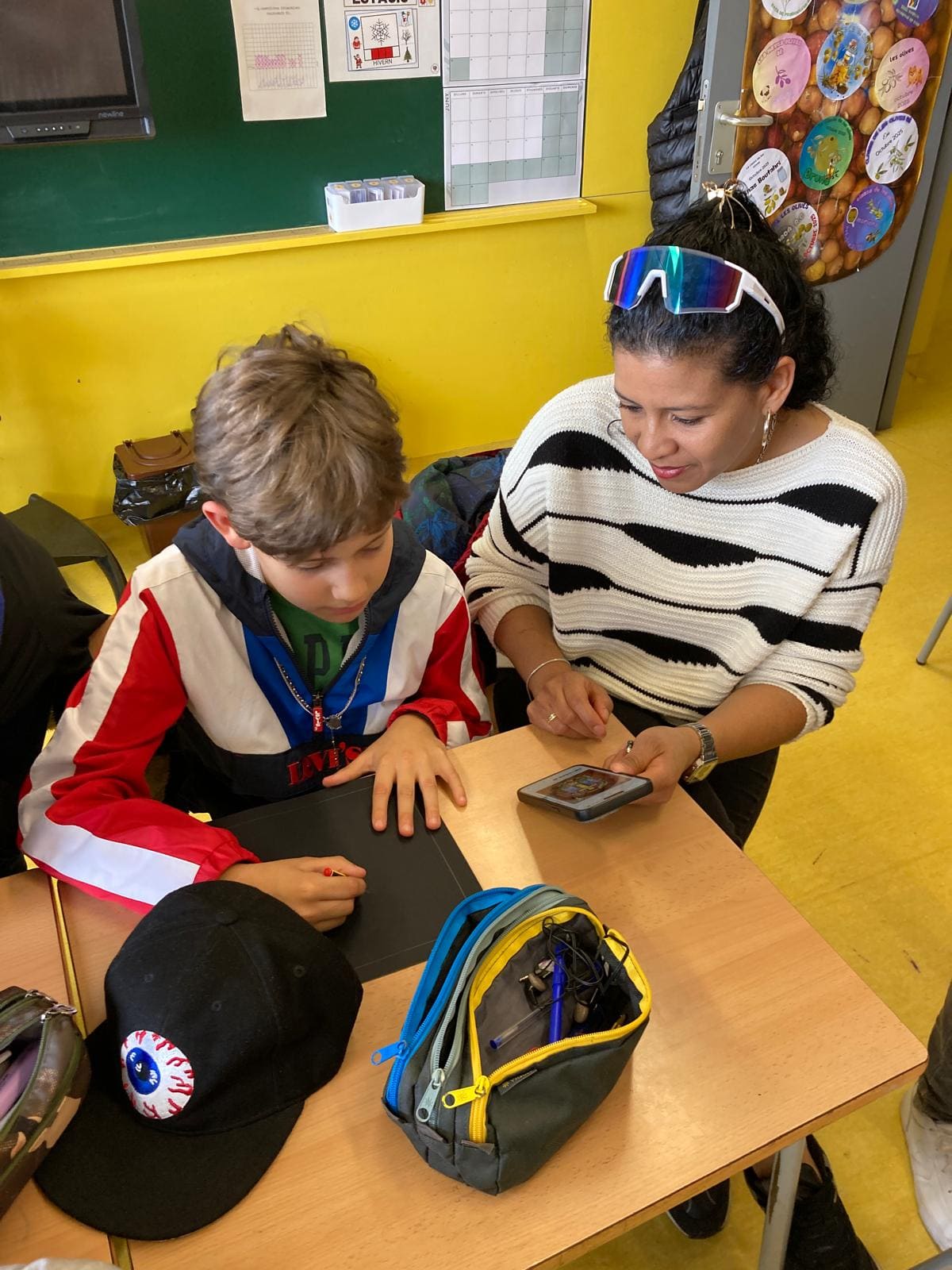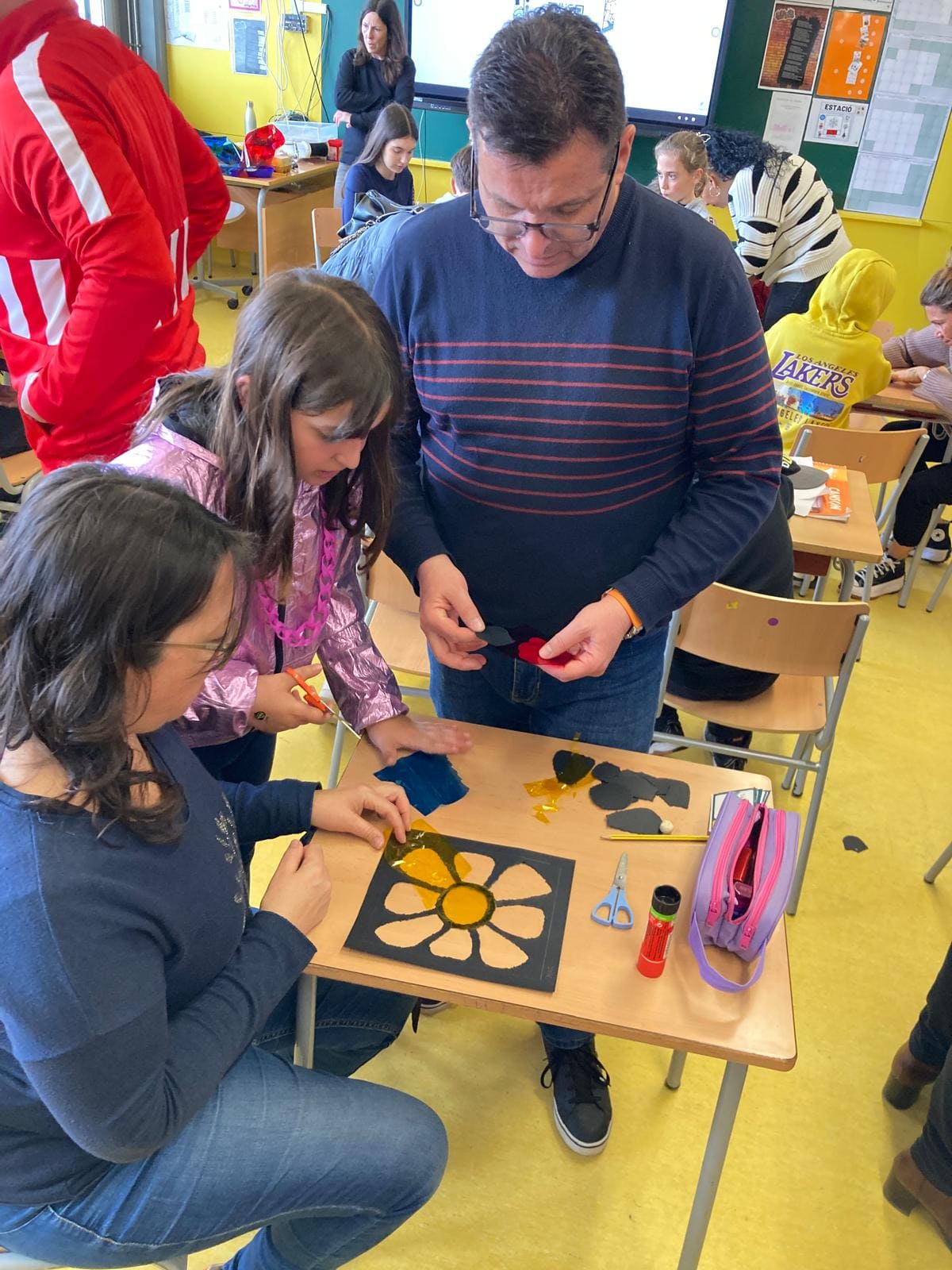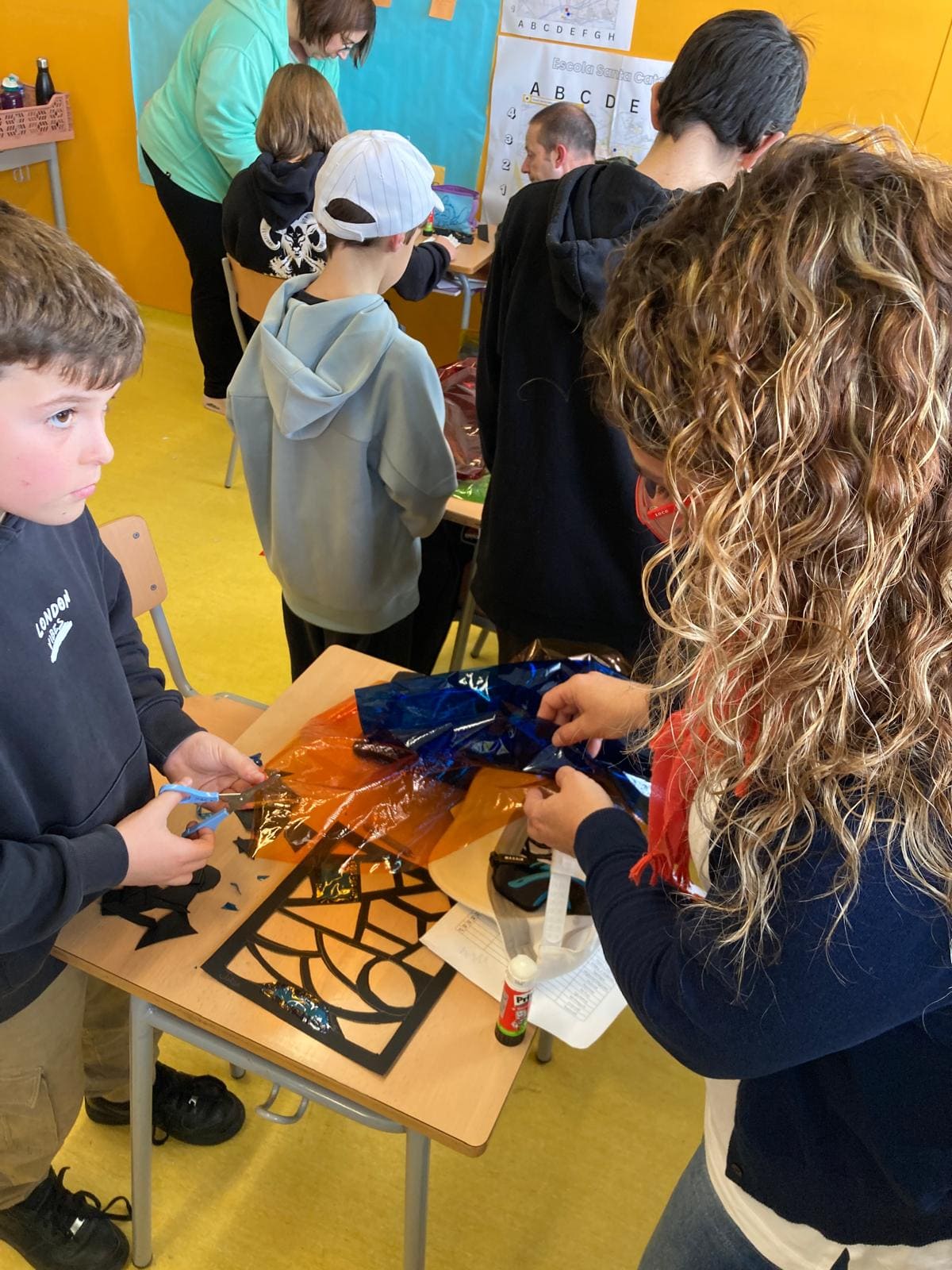 En el nostre cas, la classe de 5è, vam fer un rap on explicàvem breument el que havíem après de l’edat antiga i mitjana. Després vam fer un taller de vitralls de colors que vam ficar en una finestra de la classe perquè sembli la finestra d’una església gòtica.