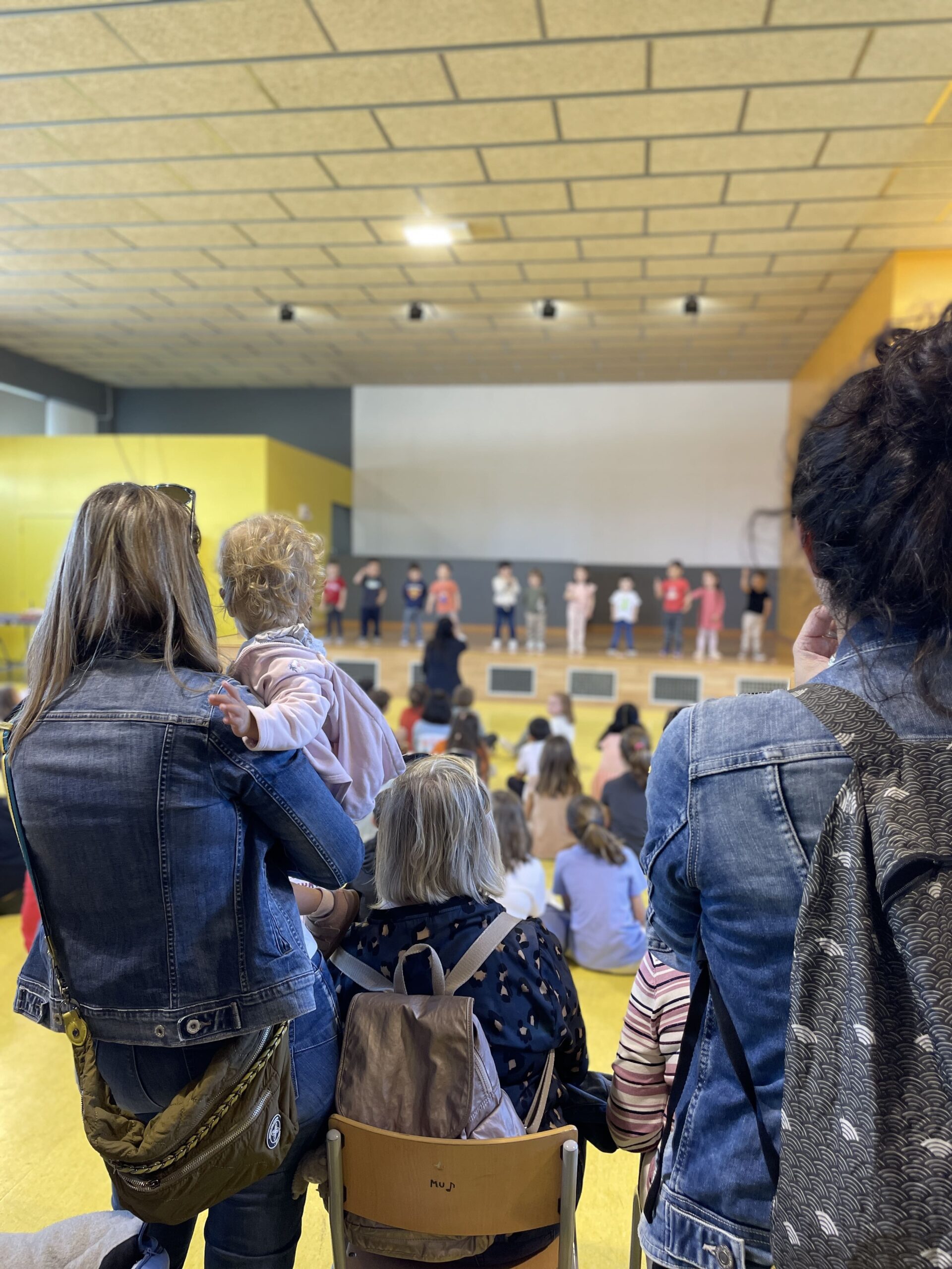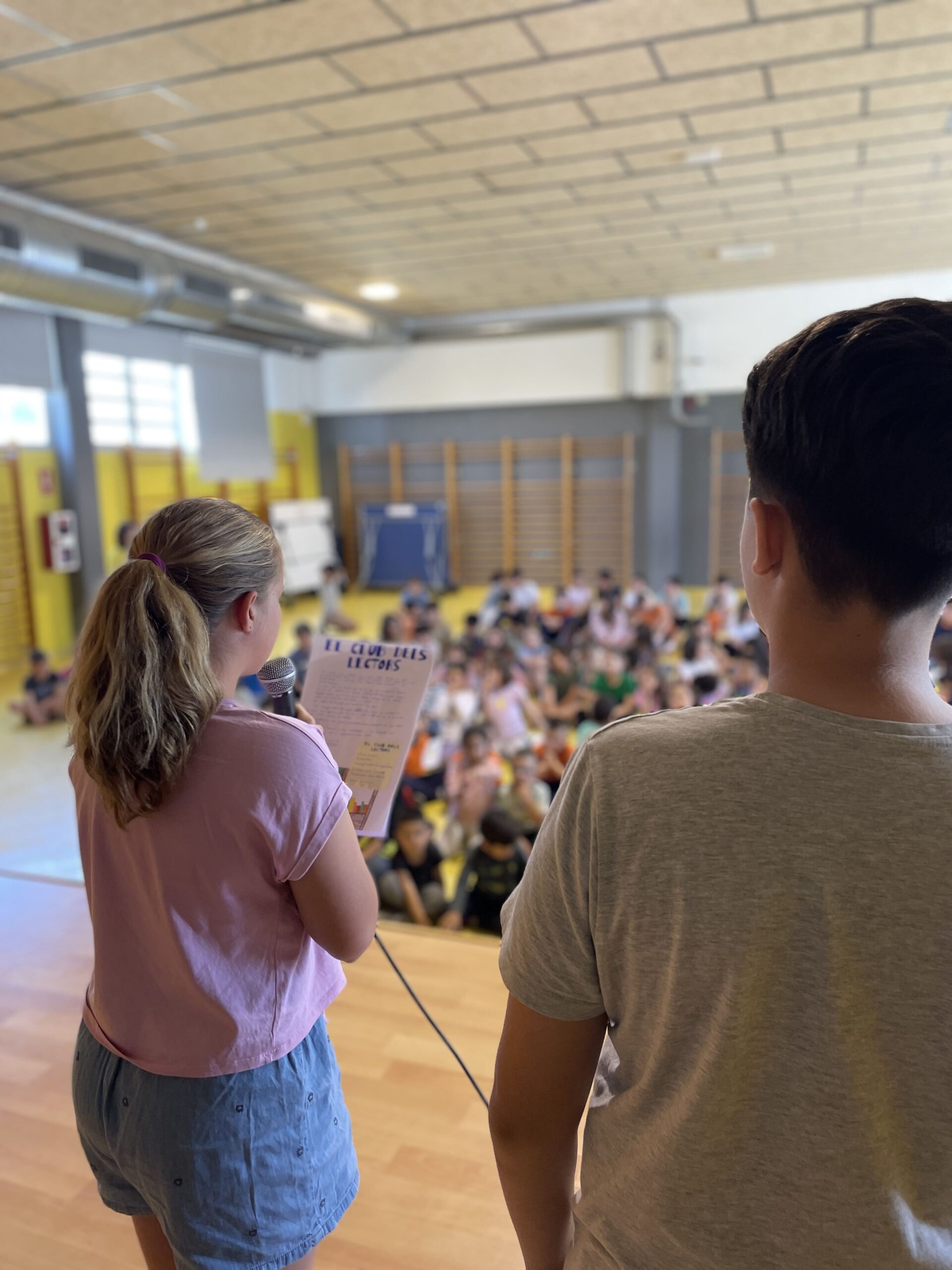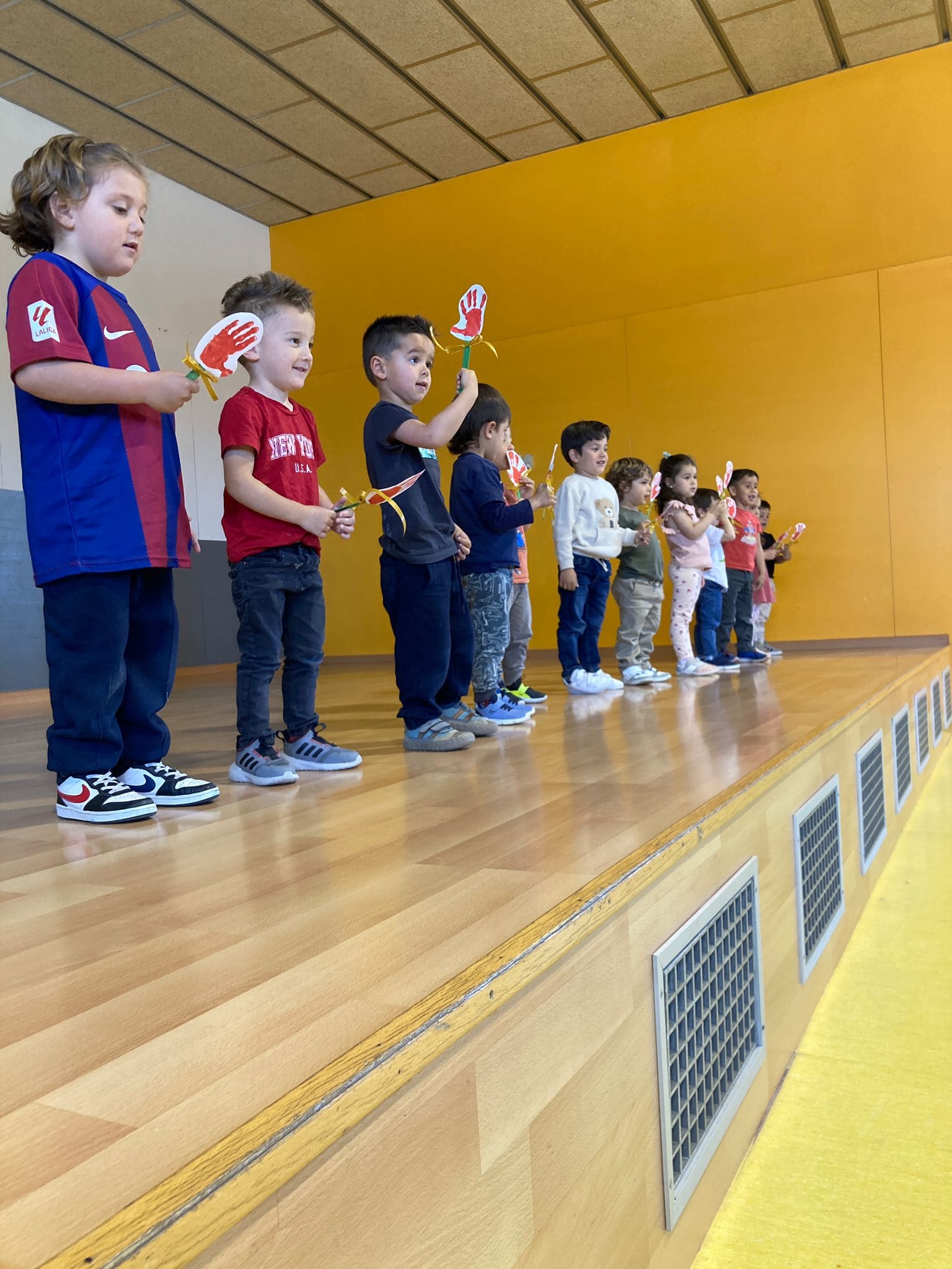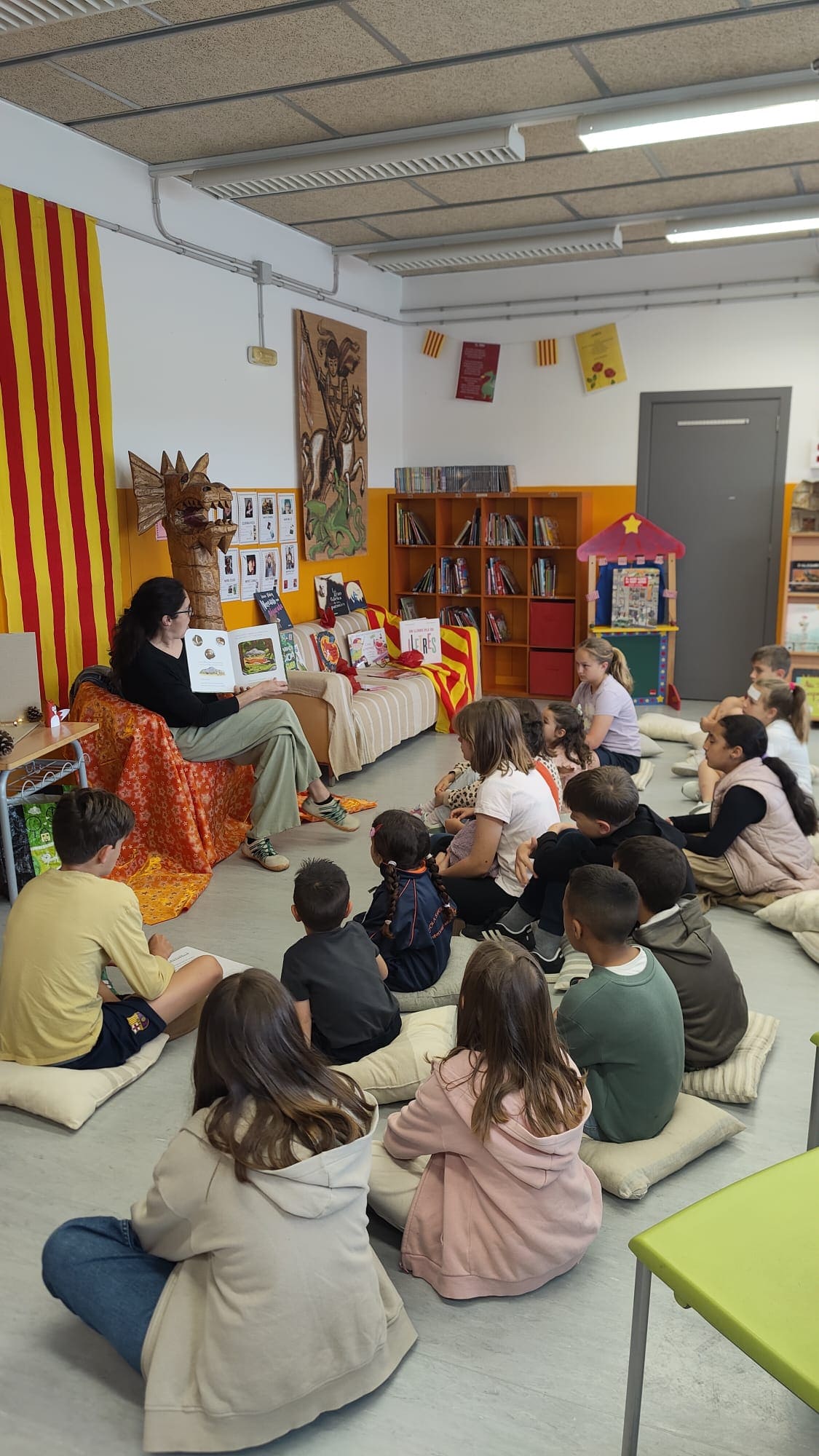 A la tarda els nens i nenes d’I3 fins a 2n vam recitar poemes de Sant Jordi al gimnàs. Van venir els familiars per escoltar els poemes.