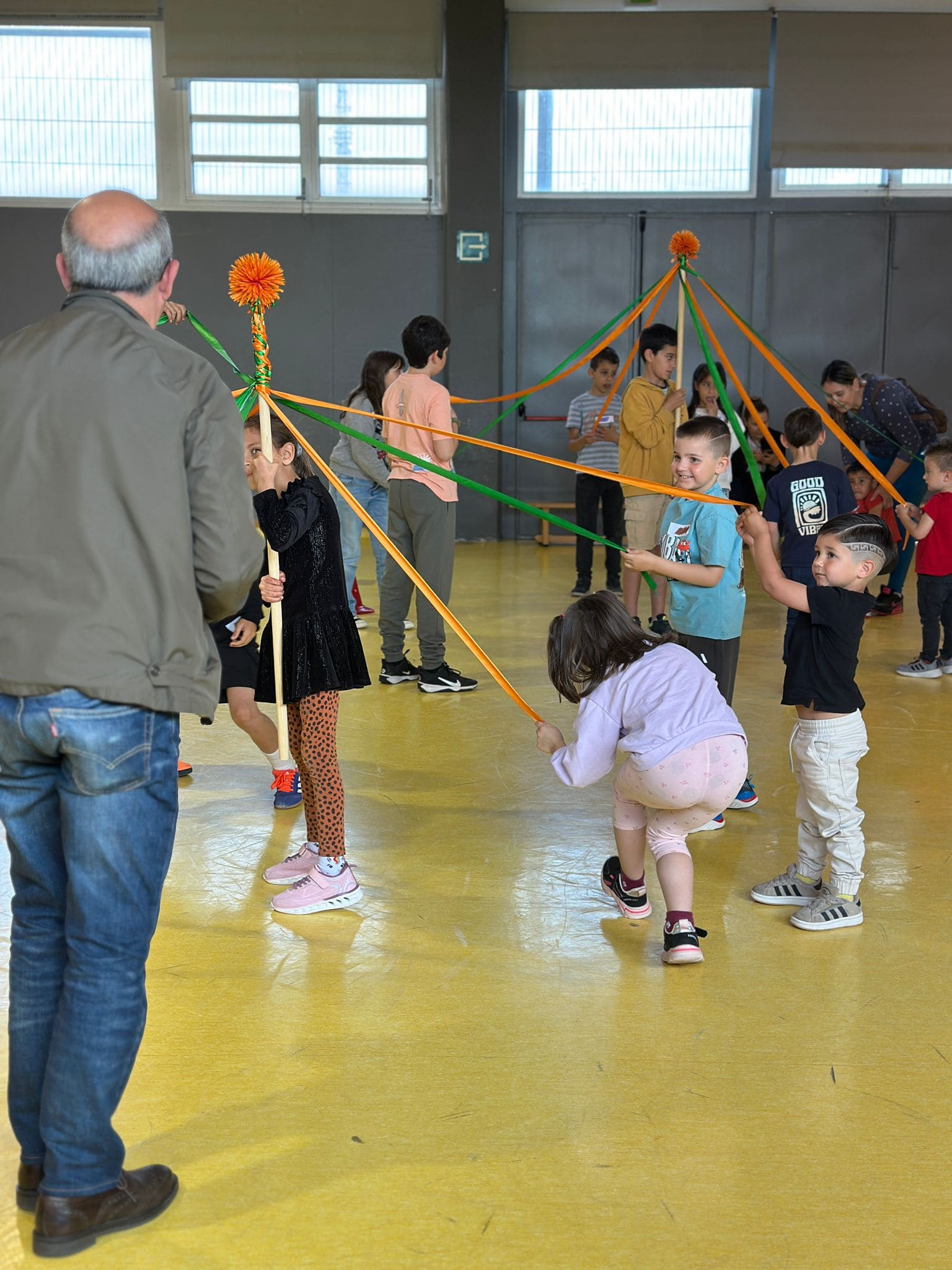 Tot seguit, la classe de 5è va ballar sardanes antigues. Quan van acabar, van tornar a ballar sardanes però aquest cop amb famílies i tots els nens de l’escola.