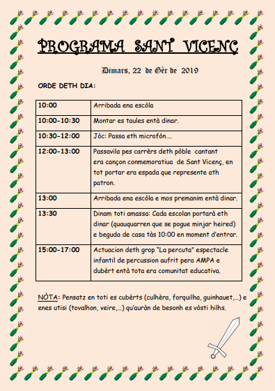 11/02/19Un an mès, es escolans de Cicle Miei participen en programa Espòrt Blanc. Dempús d´un finau de gèr fòrça heired e tamb condicions meteorologiques un shinhau advèrses, sonque s´an pogut realizar dues des tres sessions de hons previstes. Sajaram de recuperar era dusau session en acabar… Llegeix més»