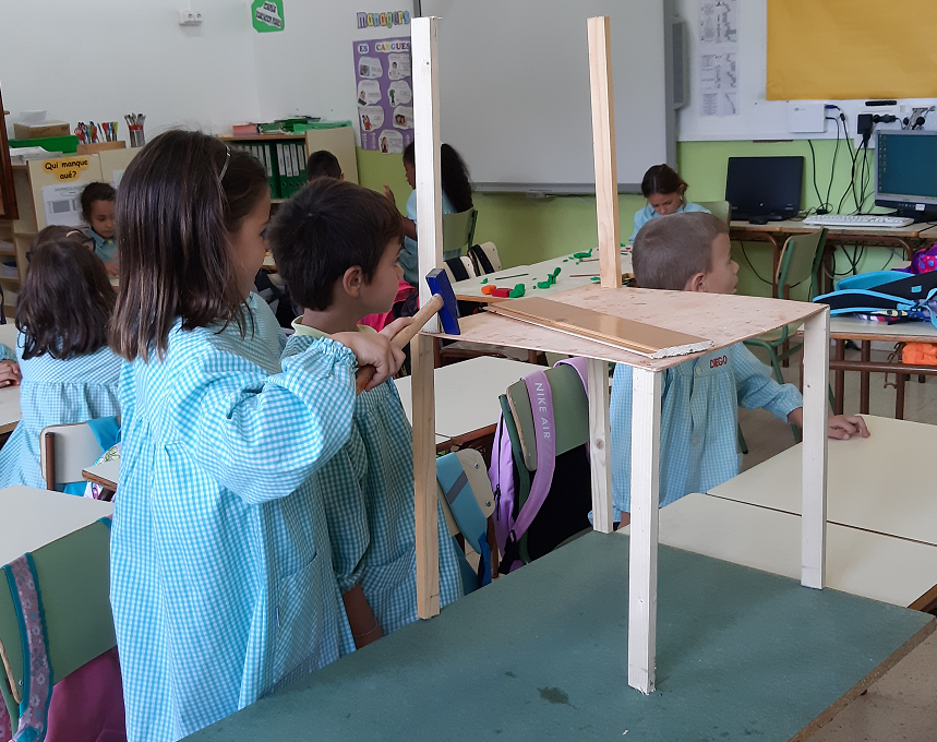 Es escolans de cicle iniciau auem bastit ua escòla tàs playmobils.