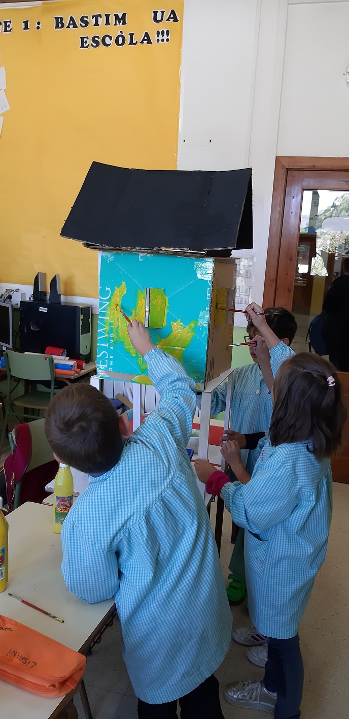 Prumèr pensèrem e reflexionèrem sus coma la poderíem crear. Dempús deth debat desidírem realizar era estructura tamb husta e es pareds tamb cartron, en tot pintar-les coma es dera nòsta escòla.