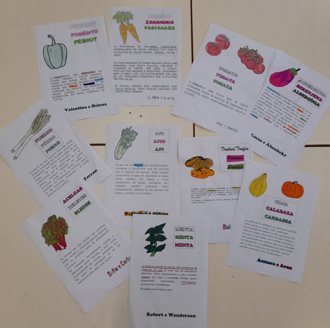 Ena classa cerquèrem informacion enes tablets de totes es ortalècies que i auie en uart. Eth resultat finau ei un huelheton damb eth nòm de cada ua des frutes e verdures enes tres lengües e un shinhau d’informacion de cada ua.
