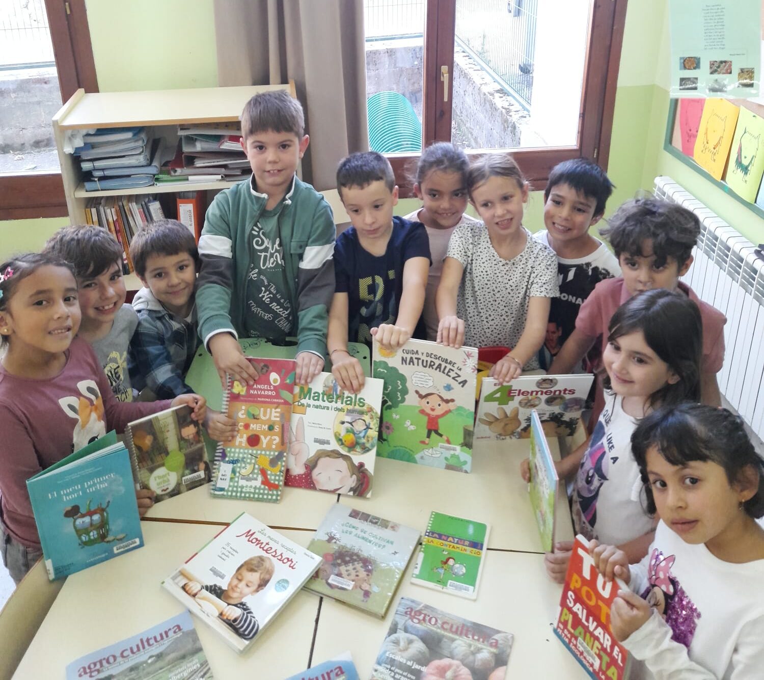 Cristina mos a explicat quina ei era sua faena, com foncione ua Bibliotèca e mos a ensenhat era sua distribucion. Seguidament, auem anat ara sala infantila qu’ei un espaci a on es mès petiti pòden gaudir dera lectura d’un pialèr de libres acòrd ara sua edat. Aquiu, mos a condat “Era fabrica d’etiquetes”, un conde illustrat que mos a semblat fòrça polit e auem jogat a endoviar endonvietes. Ei clar que non se mos a escapat ne ua responsa! Dempús auem huelhejat bèth libre que mos a cridat era atencion e, entà acabar, Cristina mos a premanit un amàs de libres de prèstec restacadi damb era setmana Bio e damb eth nòste projècte dera alimentacion saludabla e es productes de proximitat.