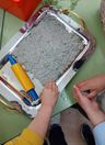 2.- Metem aigua en recipient damb es papèrs e deisham estovar dus dies