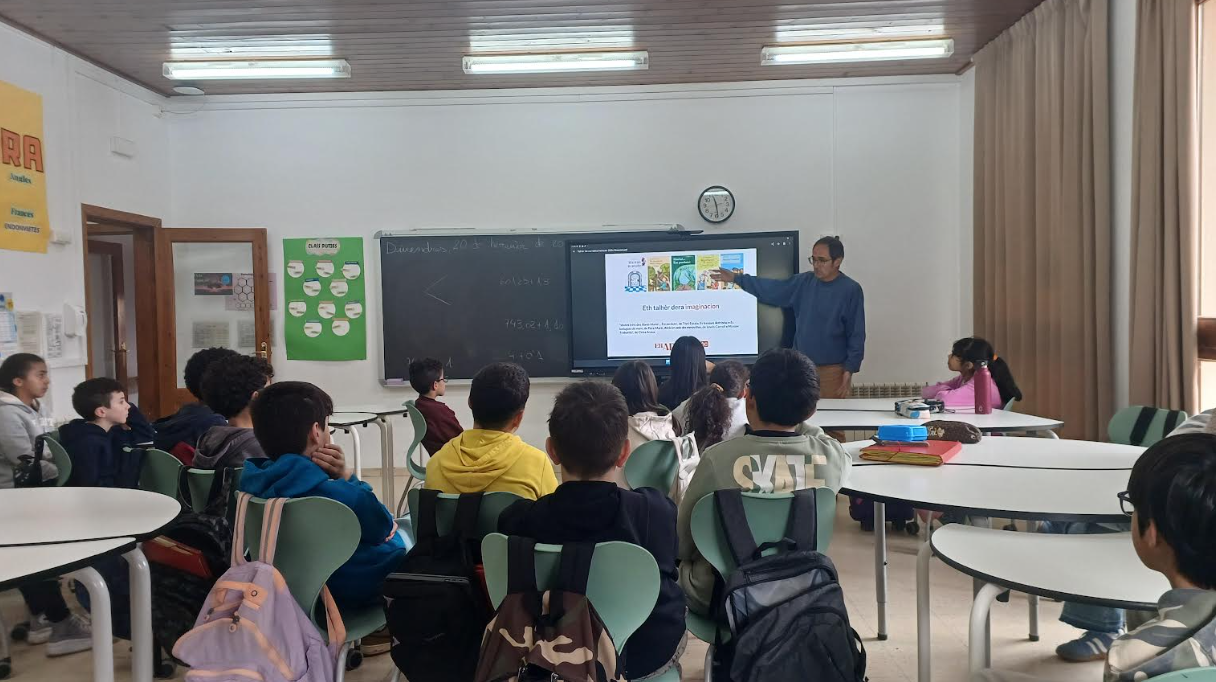 Aué a visitat Xavi Gutierrez as escolans e escolanes de Cicle Superior, en tot hèr-les un talhèr sus Narracion. Les a balhat estrategies entà promòir era imaginacion, e atau, poder-la aplicar enes narracions qu’an d’escríuer entà presentar-les a diuèrsi concorsi.