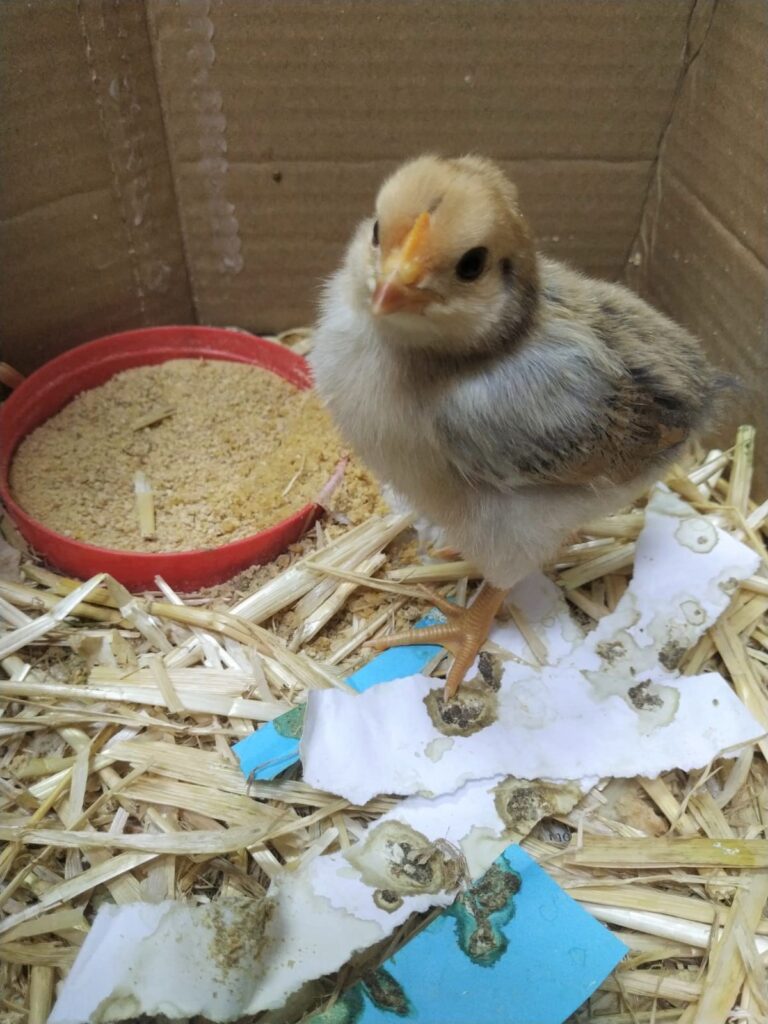 Vam demanar al CRP una incubadora, vam aconseguir ous de “Pollastres la roquera” de Corbins i vam esperar els 21 dies! La nostra sorpresa va ser gegant!!! Vam tenir la sort de veure el naixement de dos pollets !!!