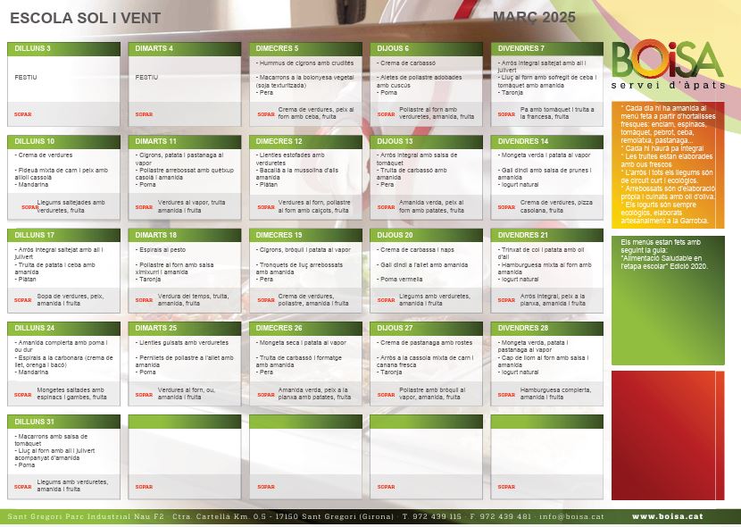 Enllaç per veure el menú del mes de març.