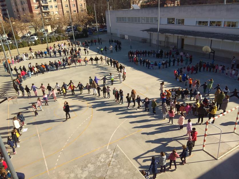 El dilluns 30 de gener vam celebrar el dia internacional de la Pau i la No Violència. Tots els cursos van reflexionar-hi i vam escriure-hi paraules relacionades com harmonia, amics, estimar, parlem, amor i igualtat. Vam sortir al pati per reivindicar-ho i per llegir el manifest que van preparar alguns alumnes del cicle superior. Us el deixem aquí perquè el pogueu llegir: