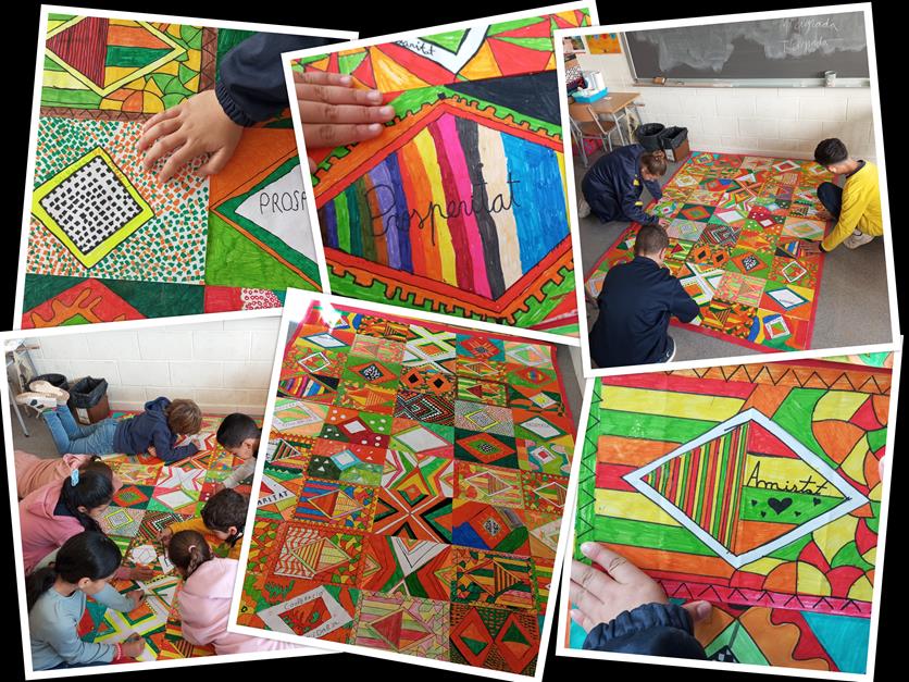 Per finalitzar el projecte hem creat una obra d’art. La nostra catifa acolorida i optimista inspirada en la cultura marroquina i confeccionada amb amor a partir de bocins de dibuixos, representa com a través de la cooperació, l’escolta, el diàleg , la solidaritat i la suma de les petites accions es poden construir i assolir grans projectes conjunts.