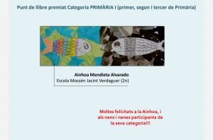 Volem felicitar a la Ainhoa Mendieta Alvarado, alumna de 2n, que aquest any amb el seu dibuix, ha estat la guanyadora en la categoria PRIMÀRIA I (1r, 2n i 3r de primària).