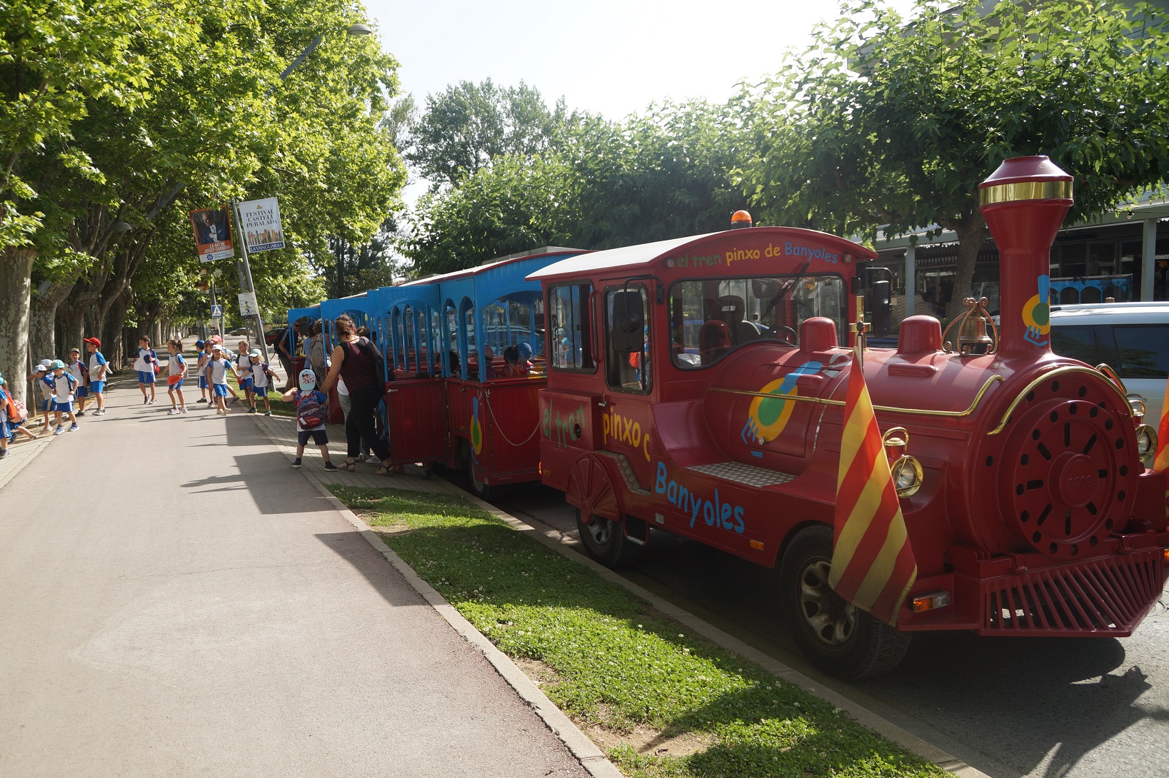 Ens ha vingut a buscar el Tren Pinxo a l’escola i ens ha portat a Banyoles. Que divertit anar saludant a tothom i cantant cançons!