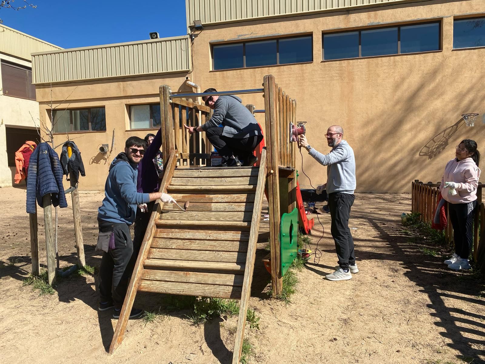 Aquest matí ens hem aplegat famílies i mestres a l’escola pel Dia del pencaire ⚒️🔩des de la comissió del Projecte Pati s’havien acordat les tasques i preparat el material i ens hem posat mans a l’obra 🔝amb l’ajuda de l’AFA que també ens ha preparat un bon esmorzar ☕️i després han preparat una botifarrada i un partit de futbol ⚽️🥅