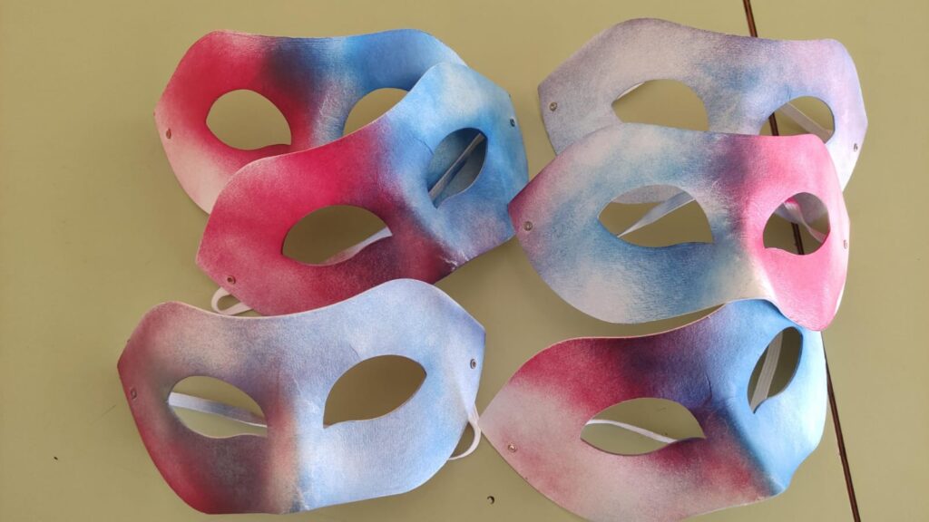 Hem començat la jornada fent uns tallers de màscares, cada alumne/a l’ha decorat com ha volgut però com que eren totes iguals després al pati feia molt de goig!!!