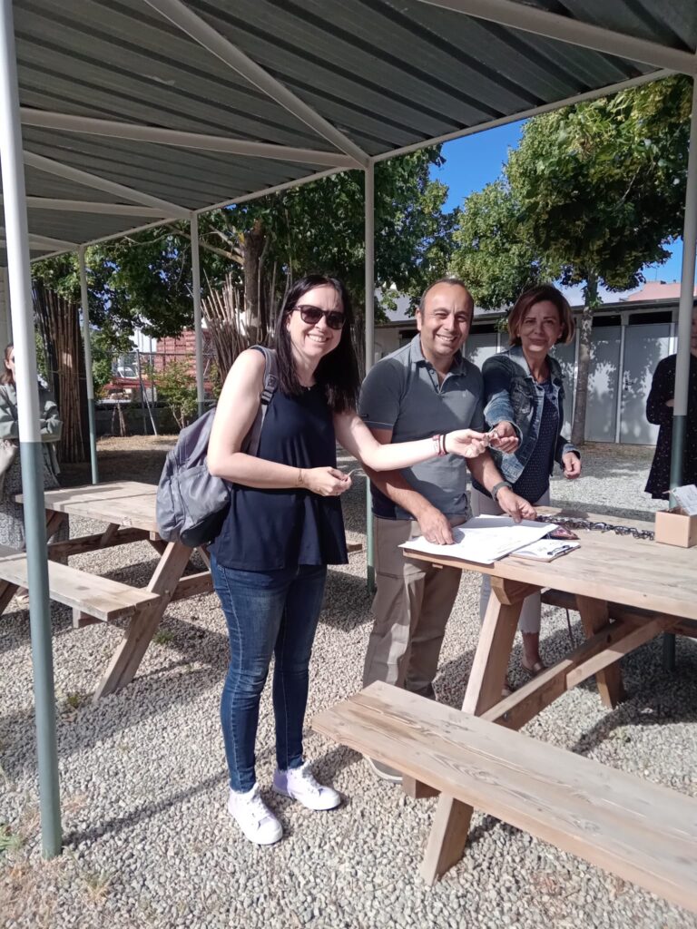 El Tècnic dels Horts Urbans de l’Ajuntament de Figueres ha fet entrega de les claus a l’Elena, la directora de l’escola. A partir d’ara i durant quatre anys podrem tornar a gaudir del privilegi de tenir cura de la terra amb el nostre alumnat.