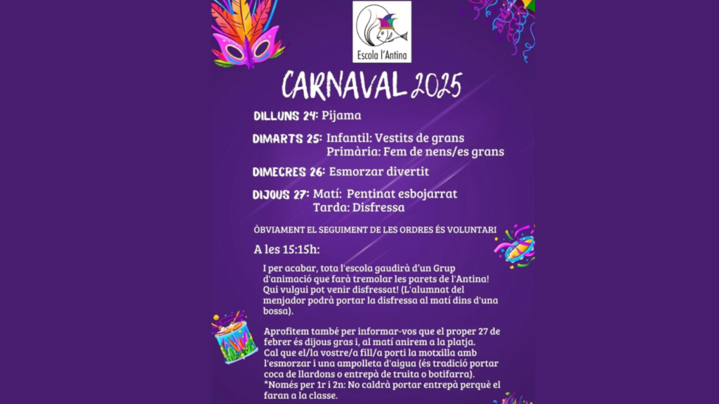 El Rei Carnestoltes ha arribat a l’Antina i ens mana seguir aquestes ordres esbojarrades! 📣✨ Del 24 al 27 de […]