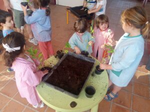 • Motriu: amb activitats de sembrar, regar, trasplantar… desenvolupen la motricitat fina i gruixuda.