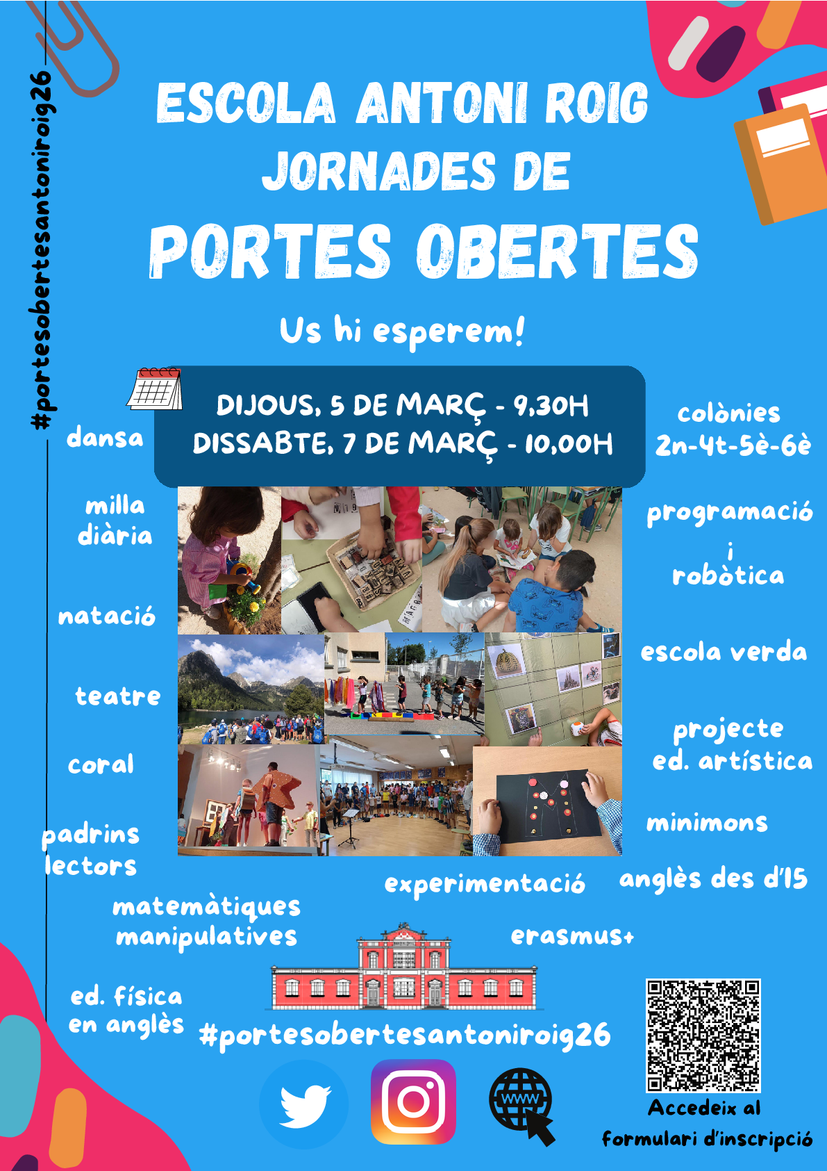 L'escola Antoni Roig és una institució centenària. Fins al juny de l'any 1996 era ubicada a l'edifici del Patronat del mateix nom, edifici noble construït per ordre del seu fundador, Antoni Roig i Copons (1817-1885), un indià que destinà part de la seva fortuna a la creació d'una escola pública, laica i mixta.