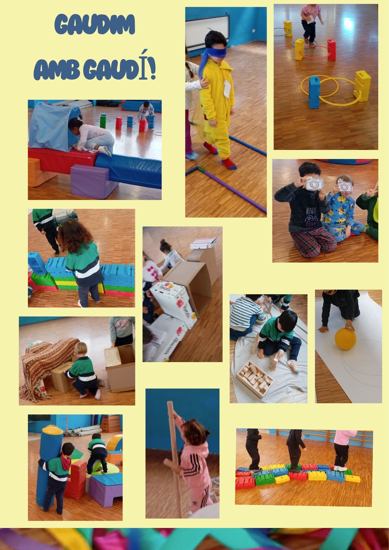 Els infants d’EI hem descobert Camins de Gaudí a psicomotricitat: hem saltat per sobre l’esquena del drac de la Casa Batlló, hem seguit els camins del trencadís, hem fet rodolar la pilota pels balcons de la Casa Mila, hem creat bancs del Parc Gaudí I hem fet construccions amb diferents materials.