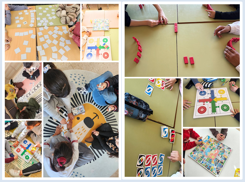 Aquesta setmana, els nens i nenes d’I5 hem compartit una estona especial amb els nostres padrins/es lectors, dedicada als jocs de taula. Parxís, oca, cartes, domino i memory han omplert l’espai de rialles, concentració i complicitat entre nosaltres.