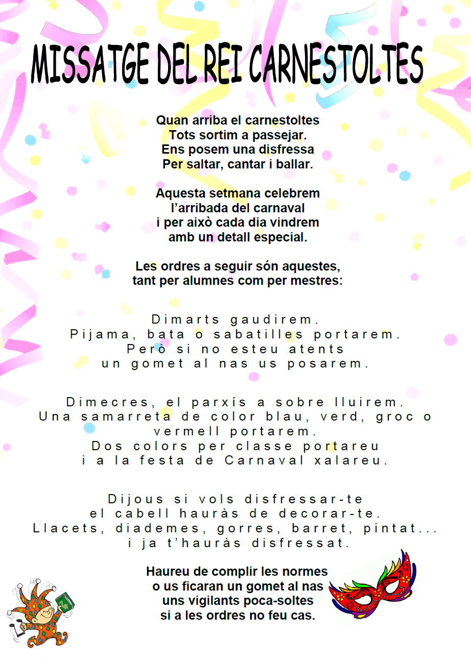 ORDRES DEL CARNESTOLTES Feu un comentari / Per admin / 18/02/2020 / CURS 2019/2020 Portada / Carnaval, celebracions