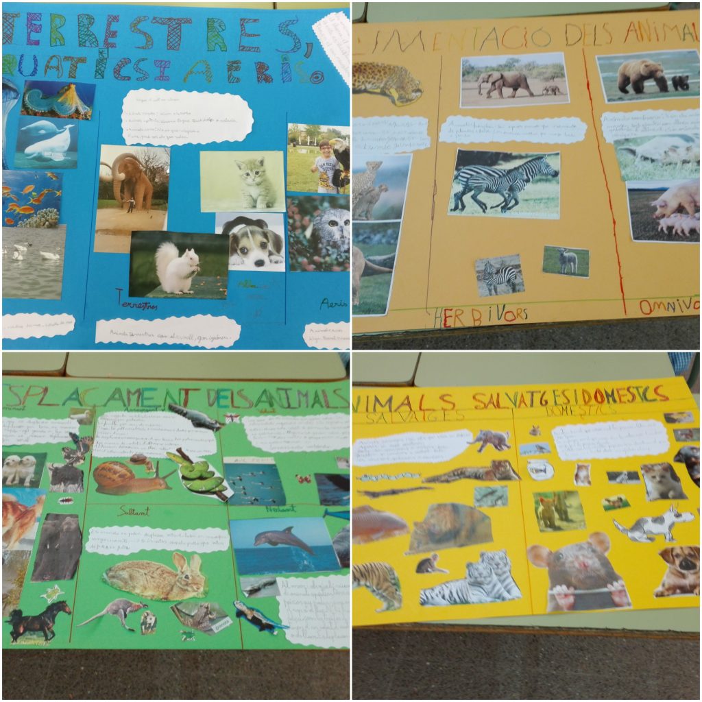 Els nens i les nenes de segon estan estudiant els animals i han realitzat aquests murals. També han preparat exposicions orals explicant els seus coneixements sobre el tema.