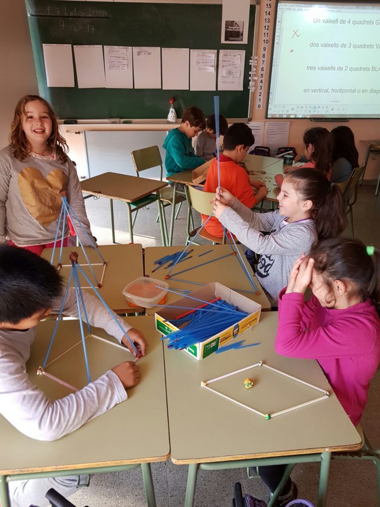 Ens adonem de tot el que sabem i hem après a tercer, quan som capaços de posar-ho en pràctica. Fem racons i recordem tot manipulant: les taules, geometria, la botiga amb els euros, la guerra de vaixells amb coordenades, operacions amb daus… Potser a casa les famílies us animeu a passar una tarda divertida!