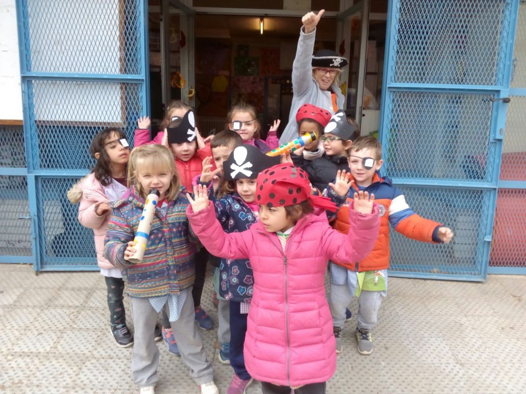Els nens/es de P4 per acabar els nostres projectes hem fet una activitat conjunta. Vam rebre una carta del pirata Barbanegra on ens deixava uns mapes per trobar un tresor. Sort que algunes mares ens havien ajudat a fer un complement de pirata. Ha estat emocionant i el tresor hem trobat!
