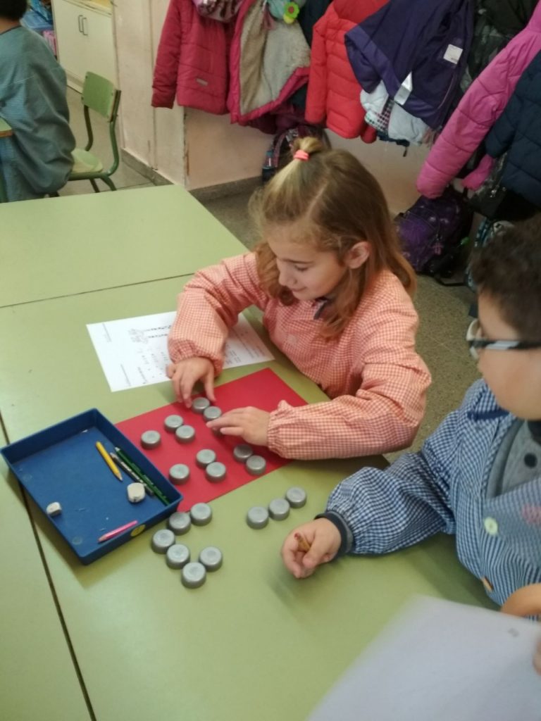 A P5 comptem i aprenem a sumar amb diferents materials, la PDI i amb una màquina molt maca que ens ajuda a esbrinar resultats.