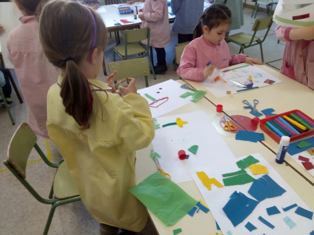 Els nens i nenes de P4 fem composicions lliures amb diferents materials (papers, gomets, retoladors, colors…) per estimular i desenvolupar la creativitat.