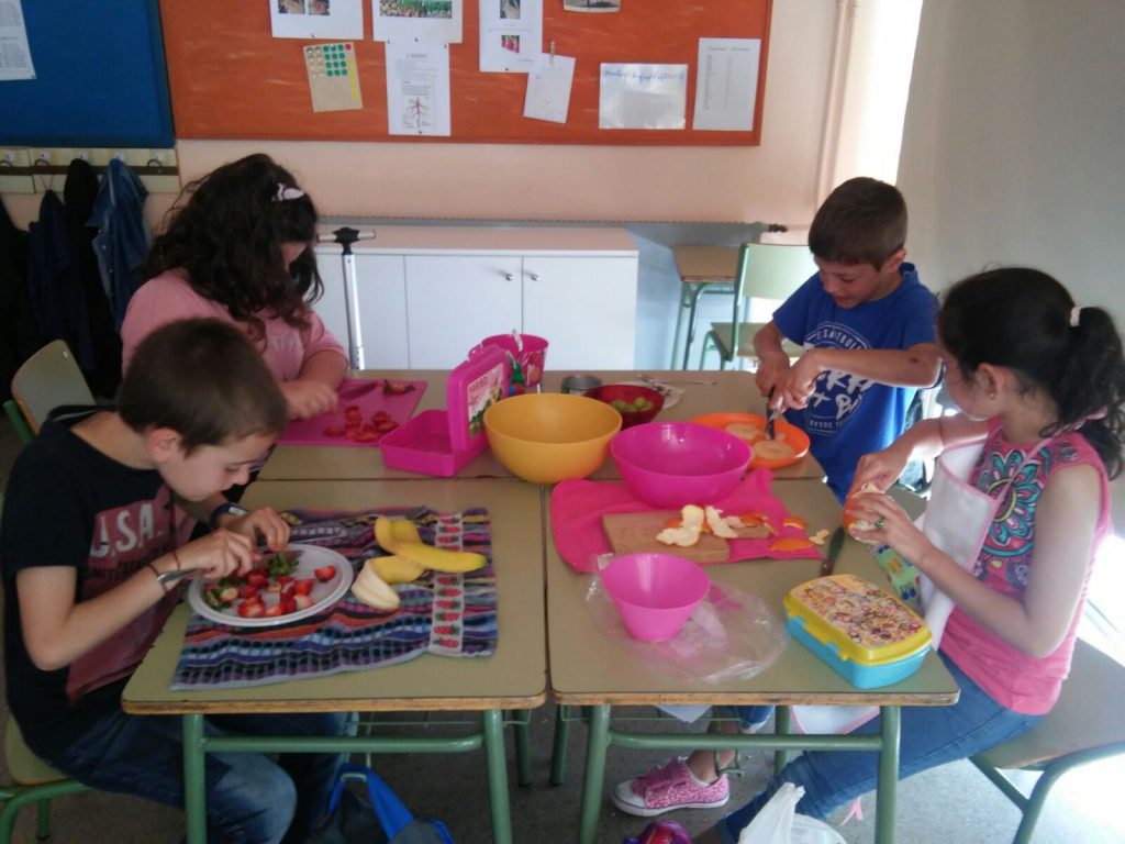 Els alumnes de tercer estan treballant el text instructiu. Hem escrit la recepta d’una macedònia: ingredients i elaboració. Per comprovar si hem fet bé la recepta hem elaborat el plat i després l’hem menjat. Estava boníssima!