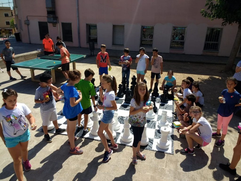 D’avui fins a final de curs l’alumnat de l’escola podrà jugar amb un joc d’escacs gegant a l’hora del pati!