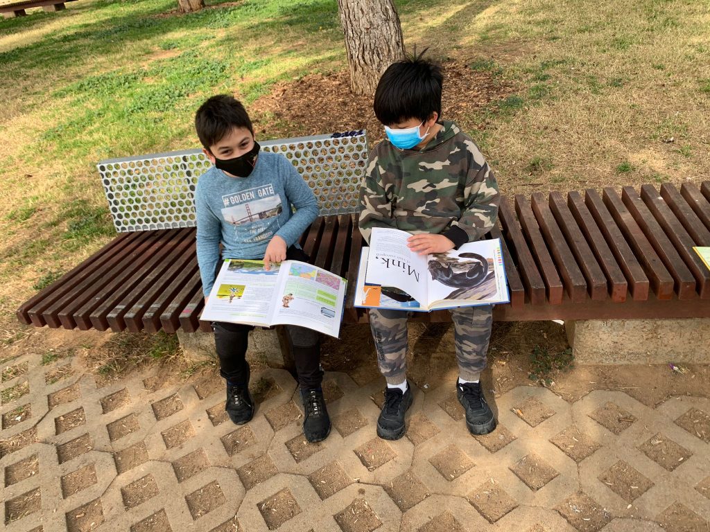 Aprofitant que tenim el Parc de la Muntanyeta a tocar, avui fem 30 minuts de lectura a l’aire lliure. Què agradable, quin relax !!
