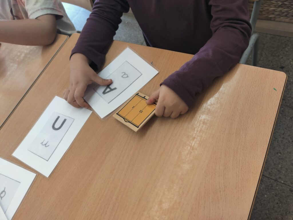 Els infants d’I5 juguen a identificar els sons de les lletres de manera manipulativa. Estan molt engrescats!!